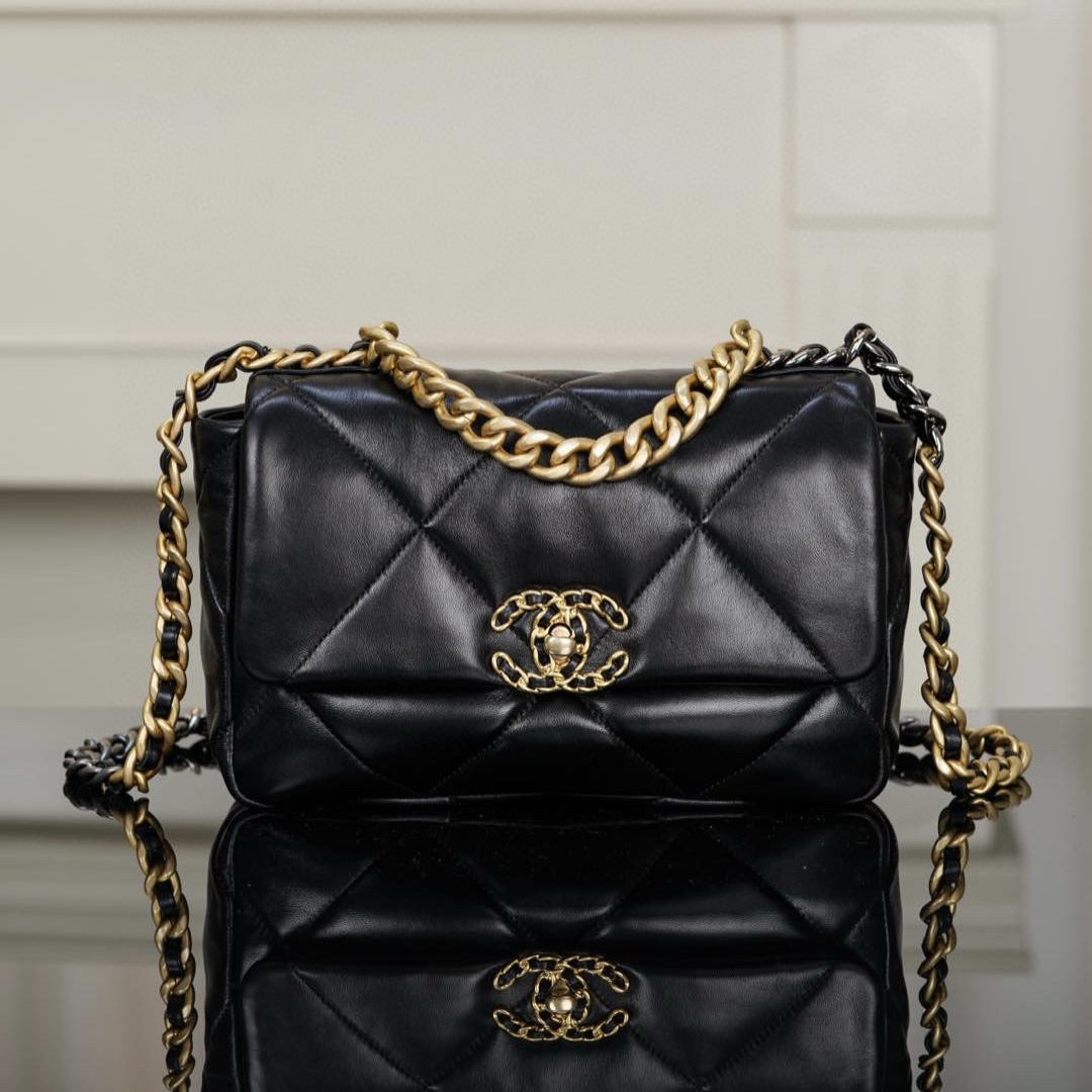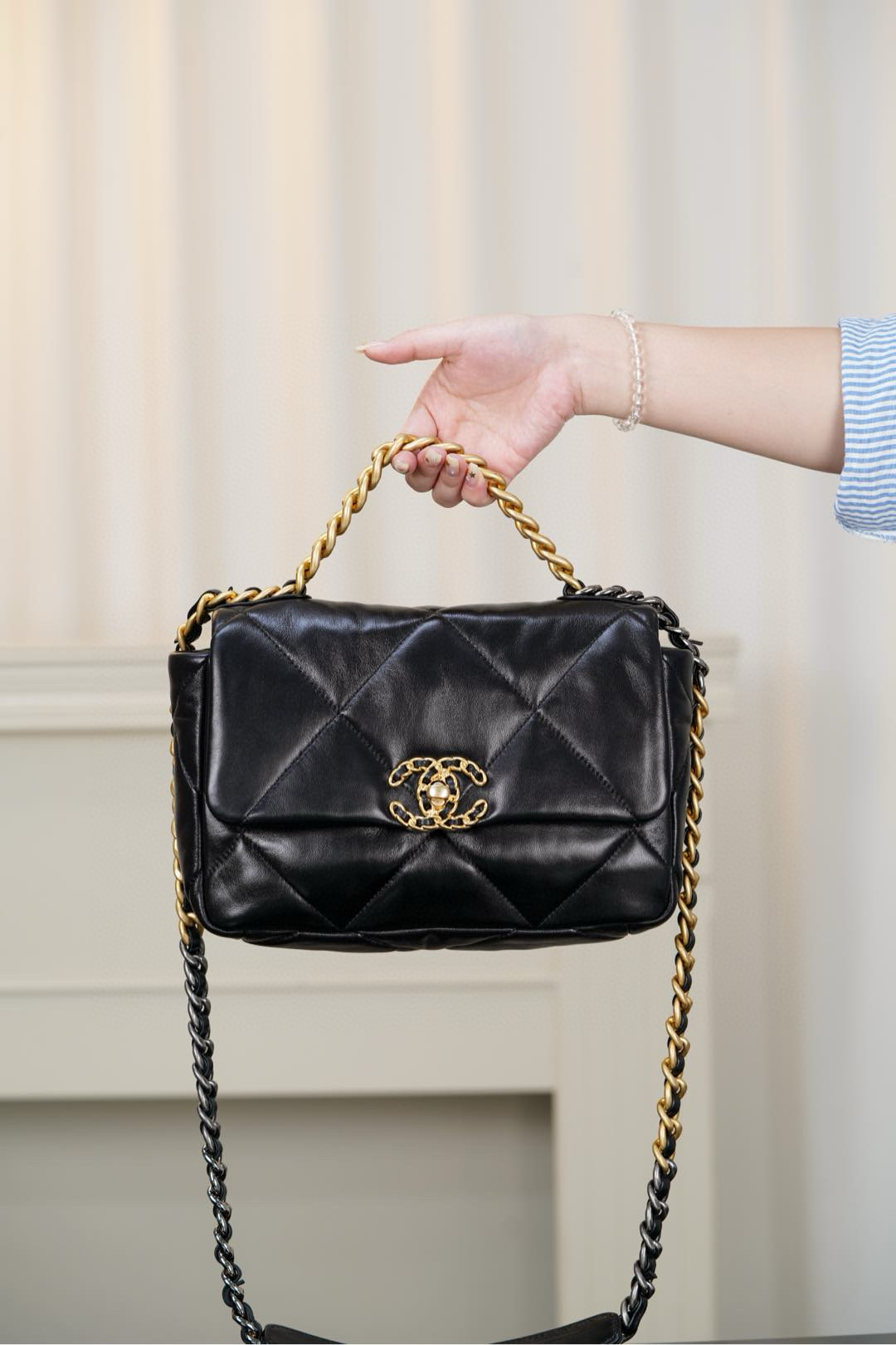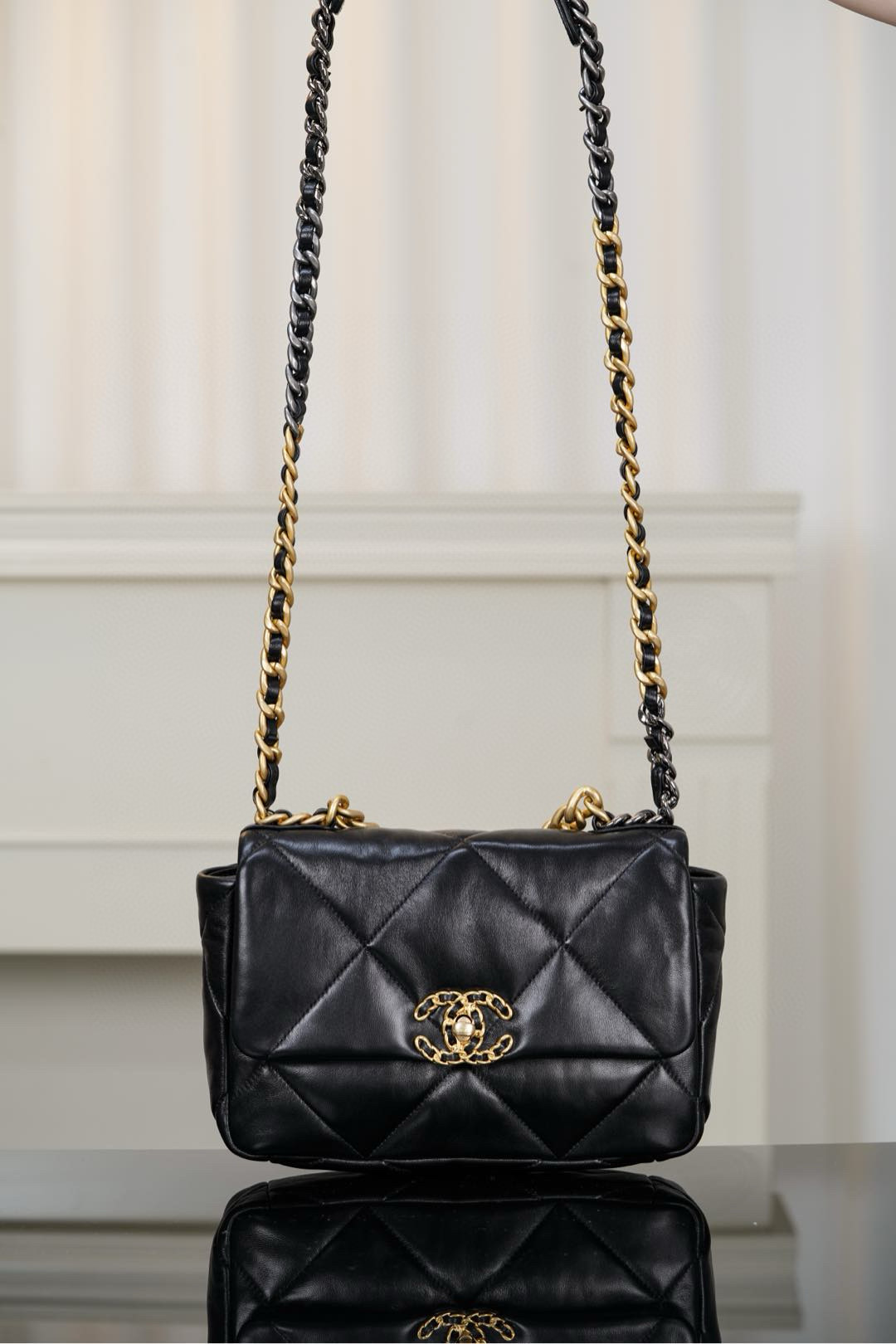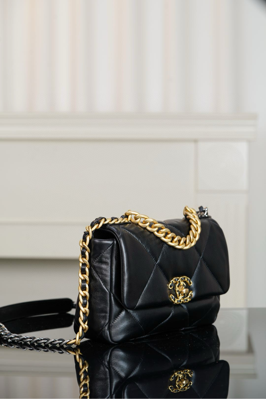 CHANEL經典手袋官方官網價格圖片 19bag繫列 黑色小羊皮 小號斜挎包