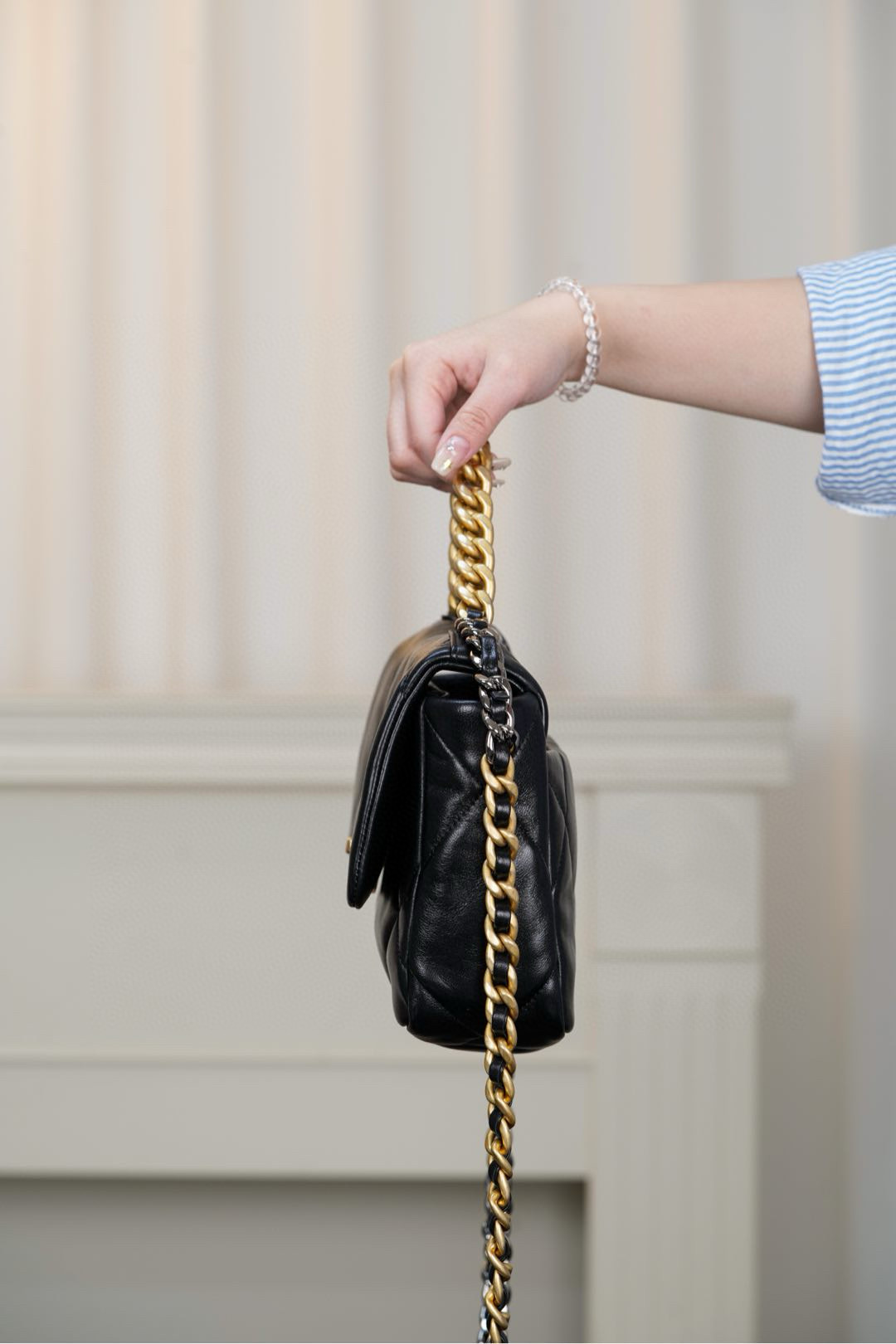 簡直是小香一切經典元素的結合,沿用了經典的皮革和金屬融合的元素,但不同於經典款的是19bag更加潮流,可以稱之為是Chanel兩個時代的見證者