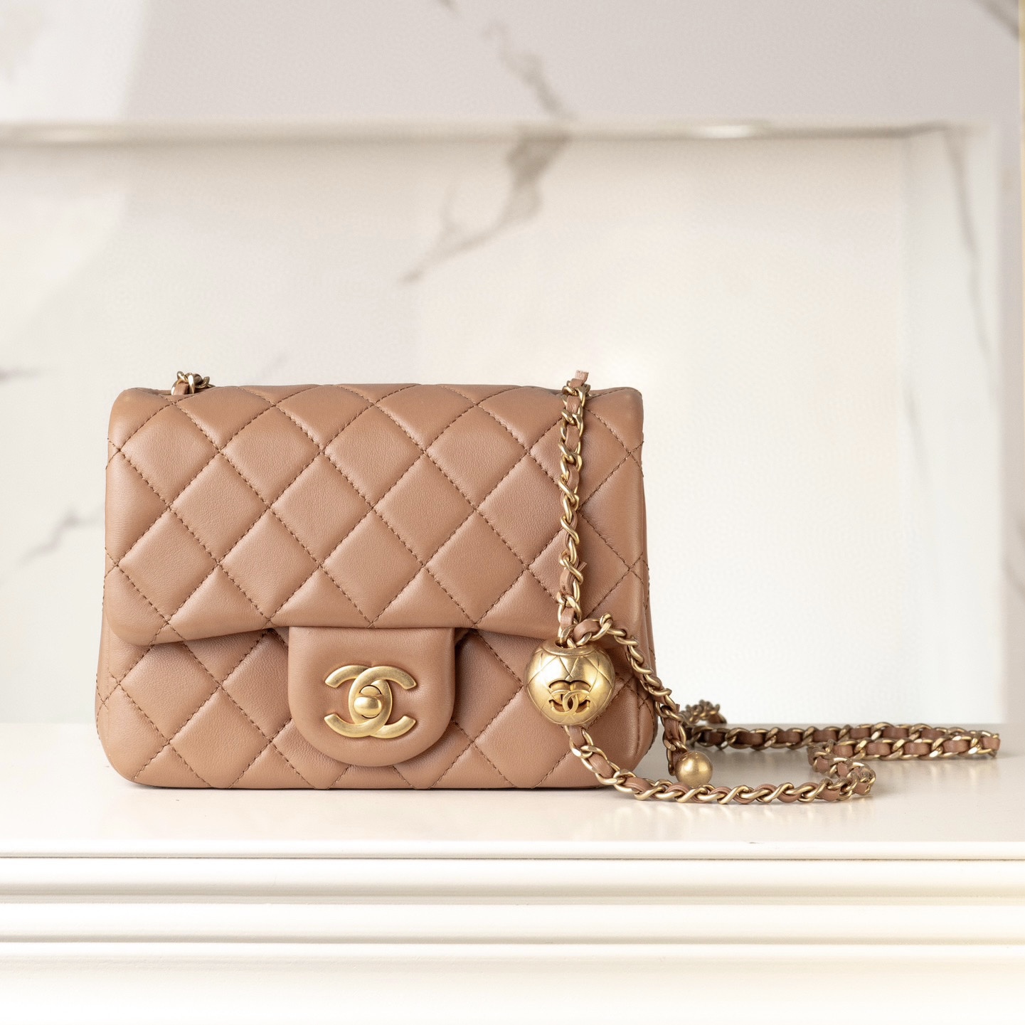 CHANEL包包迷你經典手袋 24k cf金球方胖子口蓋包