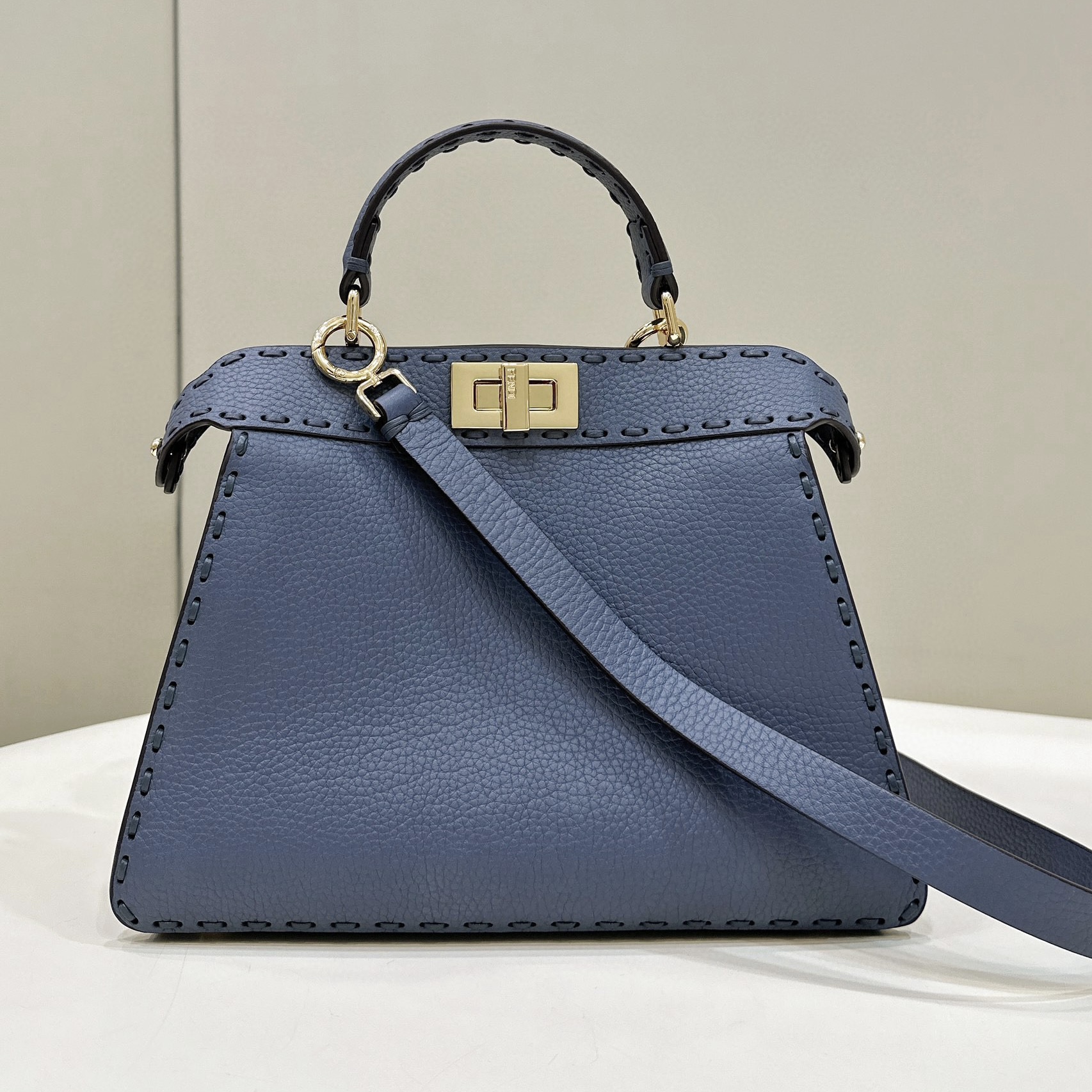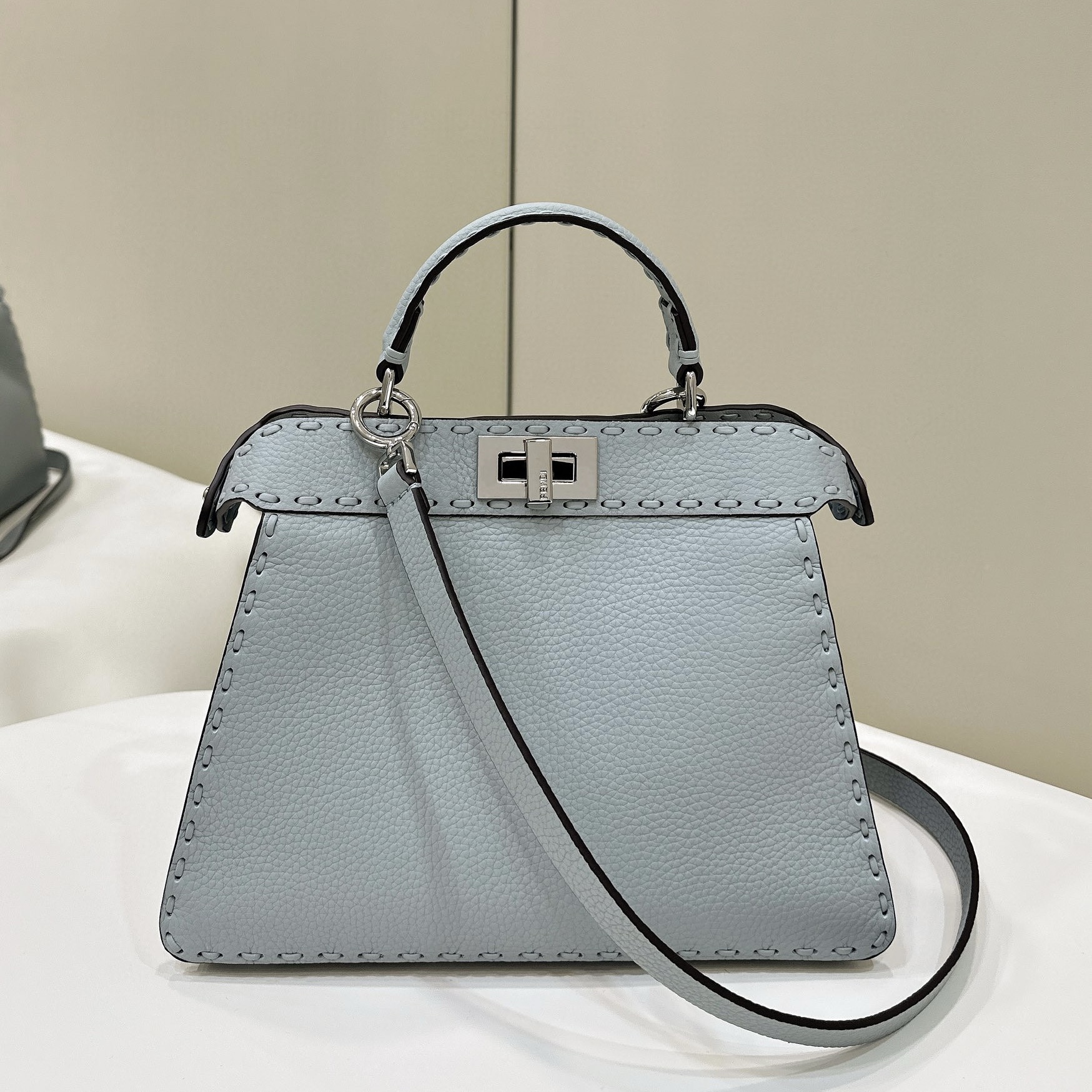標誌性Peekaboo ISeeU小號手袋,以556針大號明線手工縫製而成,代表著源自1925年、由FENDI工匠世代傳承的Selleria經典工藝。