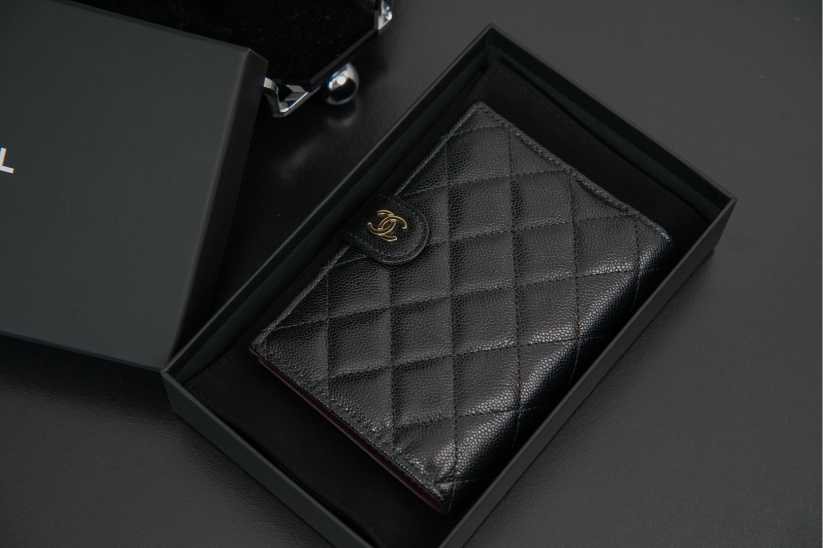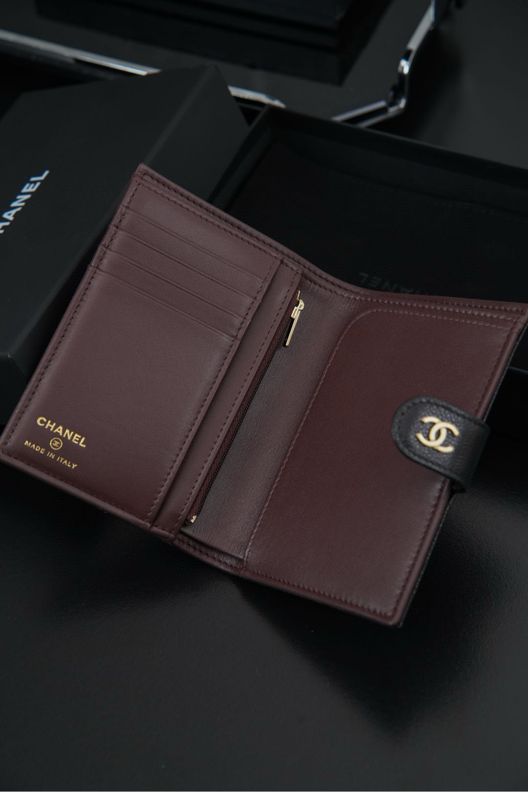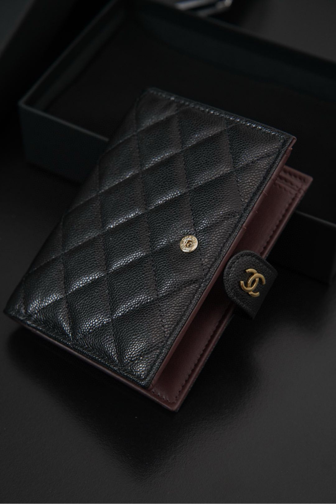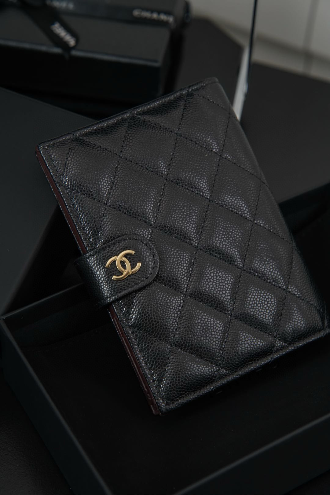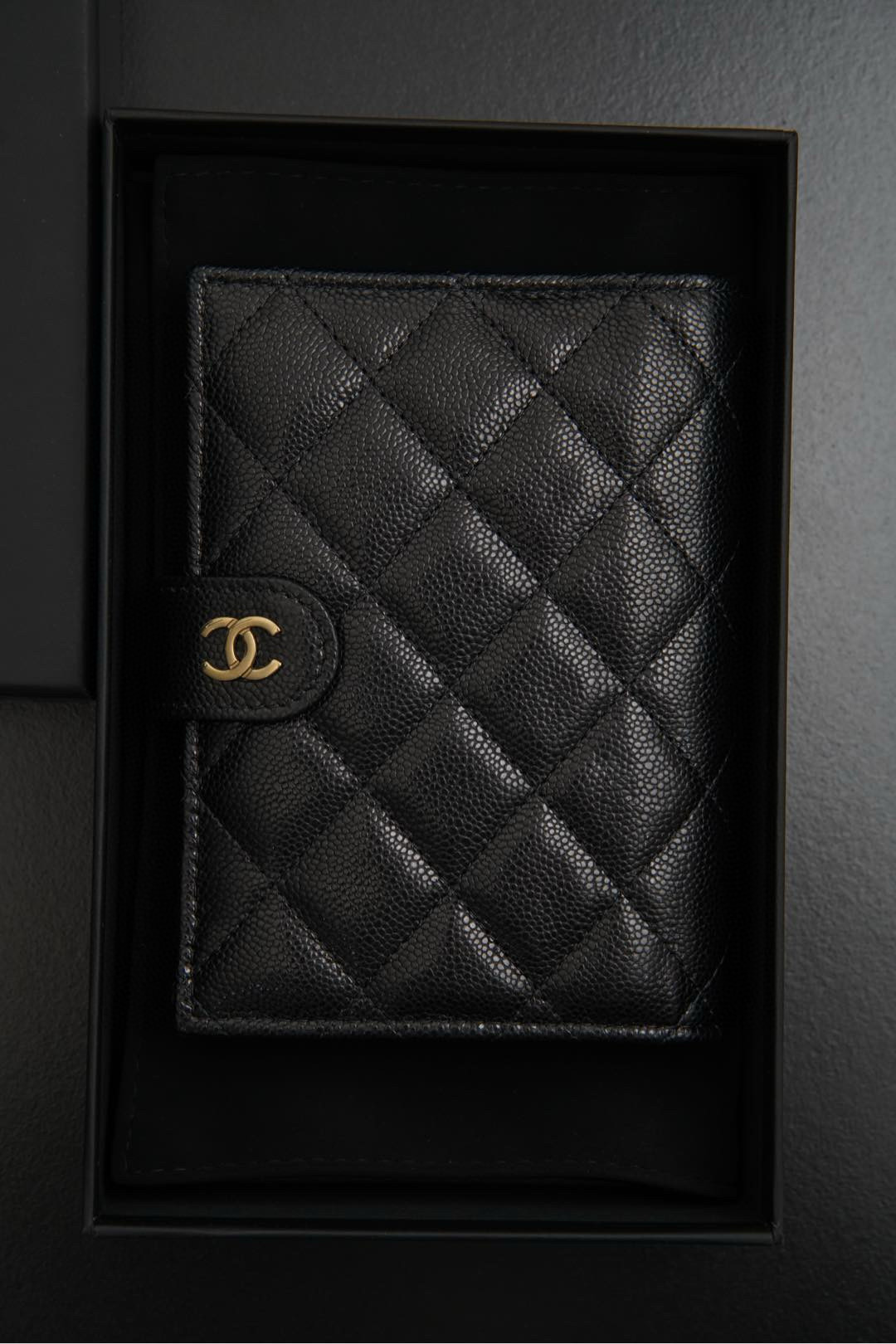 𝐂𝐡𝐚𝐧𝐞𝐥 𝟐𝟒𝐤 護照夾錢包 黑金荔枝牛🐂