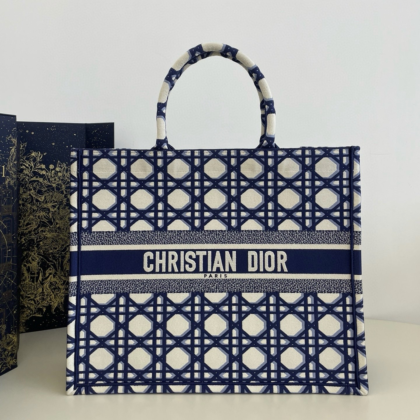 DIOR包包網站價格一覽表 中號 Book Tote 手袋 米色和藍色超大藤格紋圖案刺繡