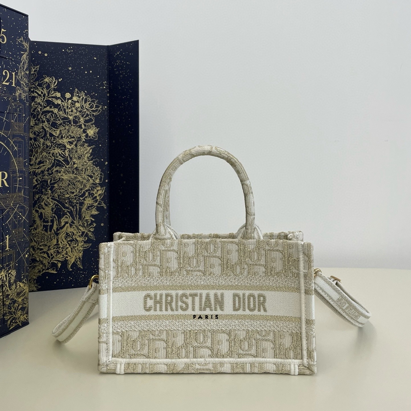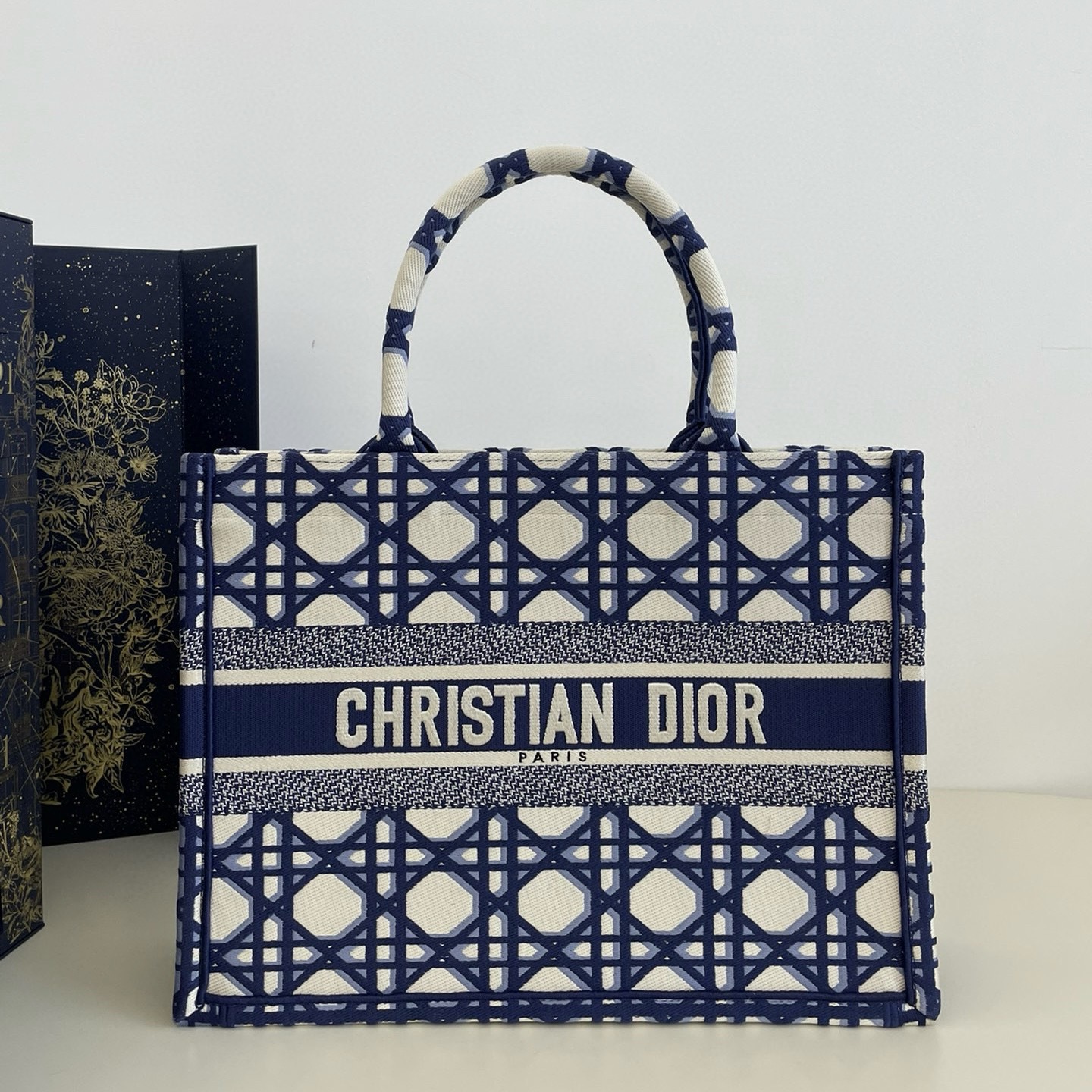 DIOR奢侈品包包官網 小號 Book Tote 手袋 米色和藍色超大藤格紋圖案刺繡