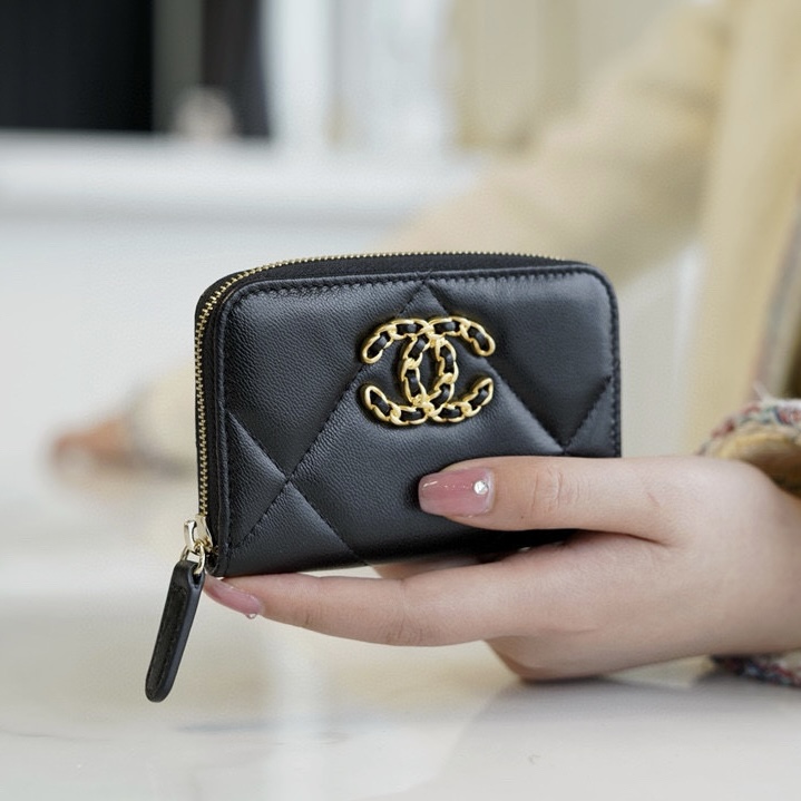 香奈兒CHANEL女士包包 香港官網19系列迷你口蓋包 零錢包 黑金
