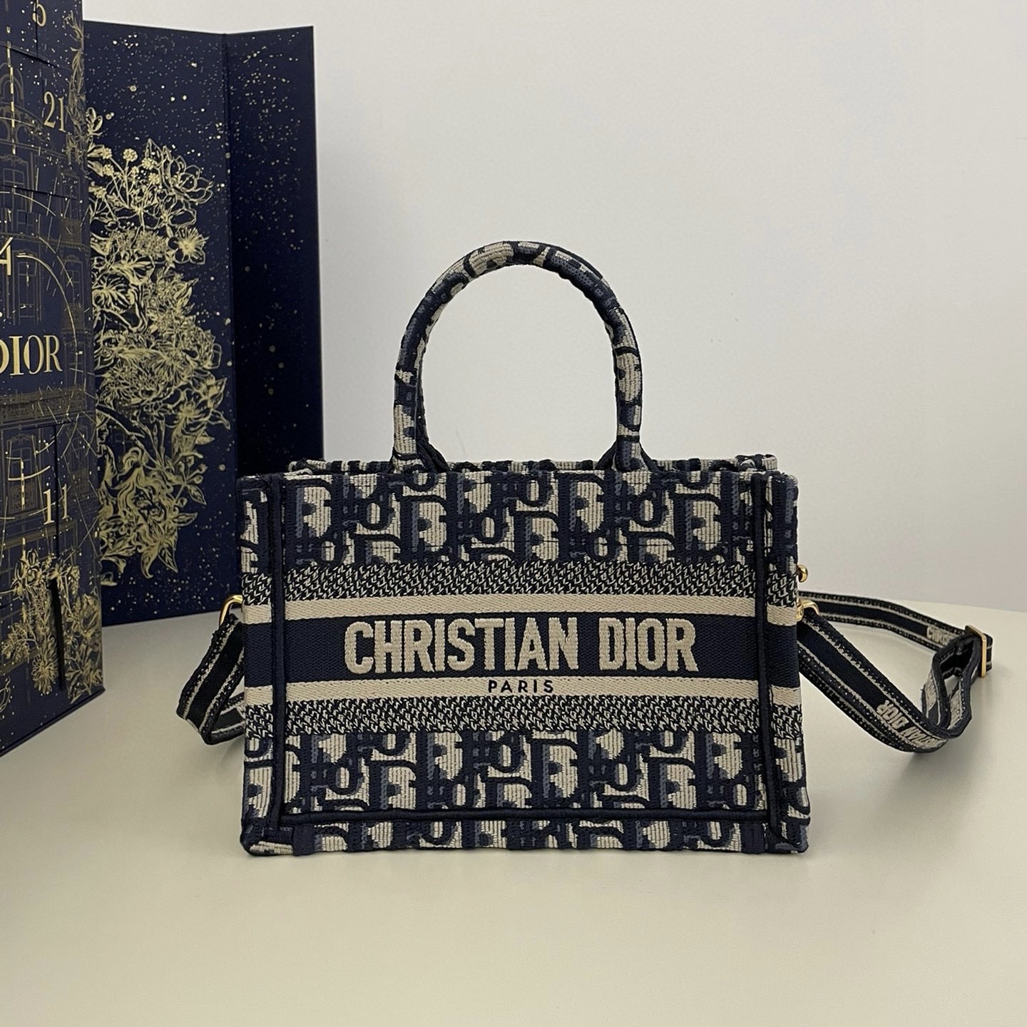 由瑪麗亞·嘉茜婭·蔻麗 (Maria Grazia Chiuri) 呈獻的經典 Book Tote 手袋以原創設計演繹優雅風格。款式高雅,展示經典的藍色 Oblique 印花刺繡和牛皮革。內部設有拉鏈口袋和貼袋,可收納各種日常用品。實用的小號款式搭配可調節、可拆卸的刺繡肩帶,彰顯 Dior 的精湛工藝,可手提或肩背。