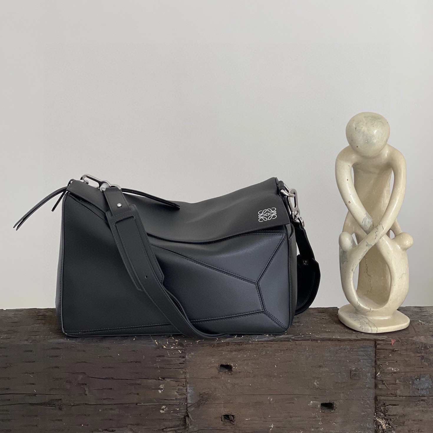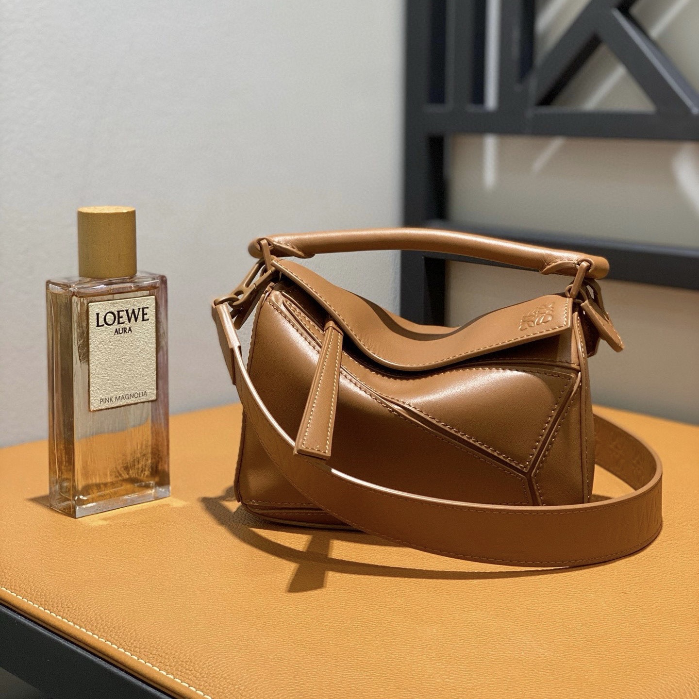 顏色: 沙色 Puzzle 手袋是創意總監喬納森·安德森(Jonathan Anderson)為 LOEWE 推出的首款手提包。長方體形狀和精確的切割技術創造了 Puzzle 獨特的幾何線條。此小號版本采用柔軟粒面牛皮革製成,飾有重疊邊緣。
