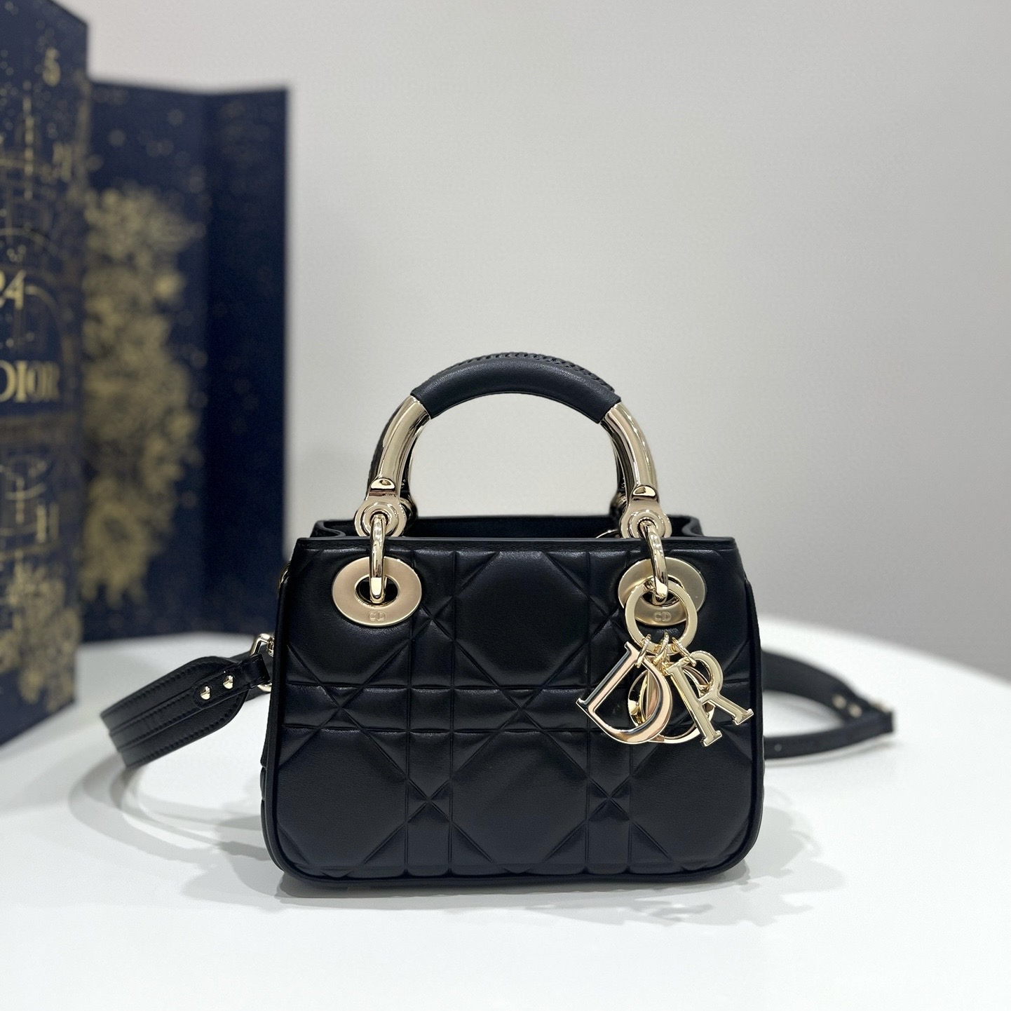 迪奧Dior 官方網站價格圖片 Toujours 手袋 小號黑色牛皮革超大藤格紋
