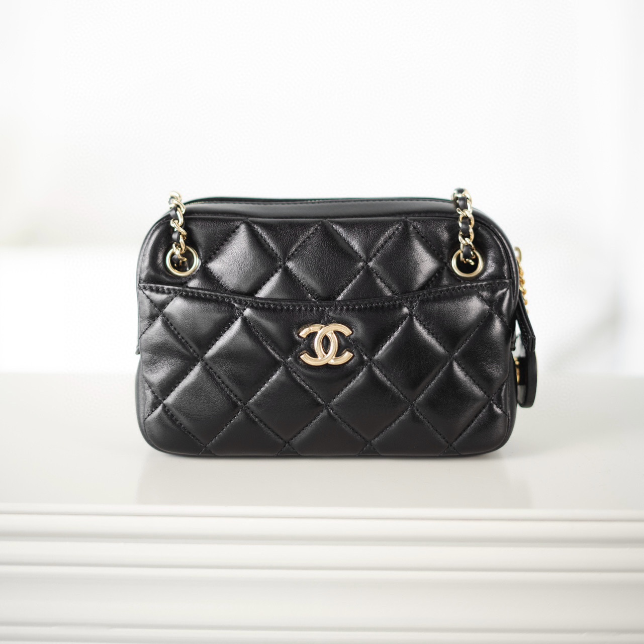 Canada香奈兒女包經典款式官網專櫃 22 手袋 黑色亮面小牛皮