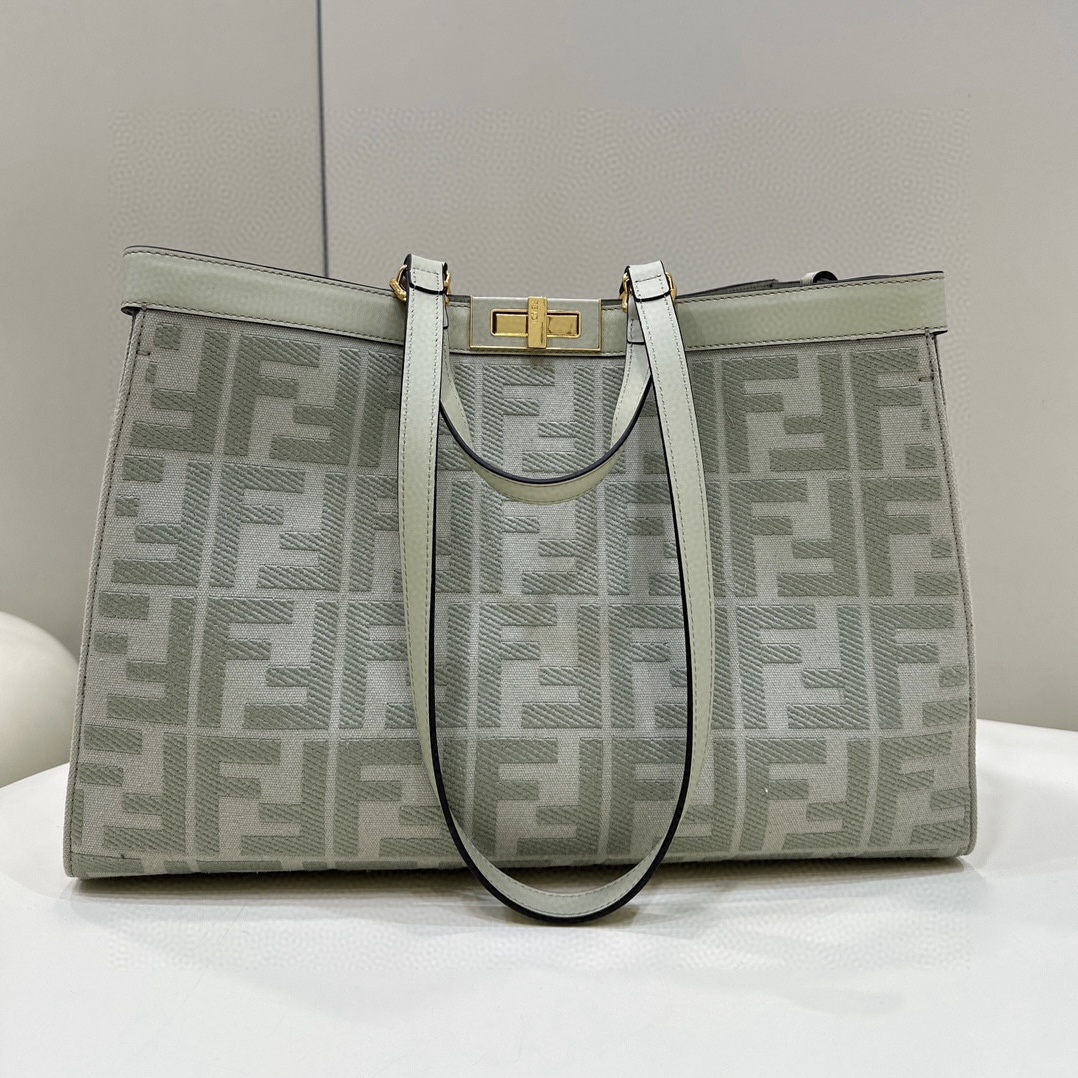 X-Tote中號手袋,帆布材質,飾有同色系FF浮凸圖案刺繡。綴有深棕色皮革飾邊,飾有經典扭鎖。