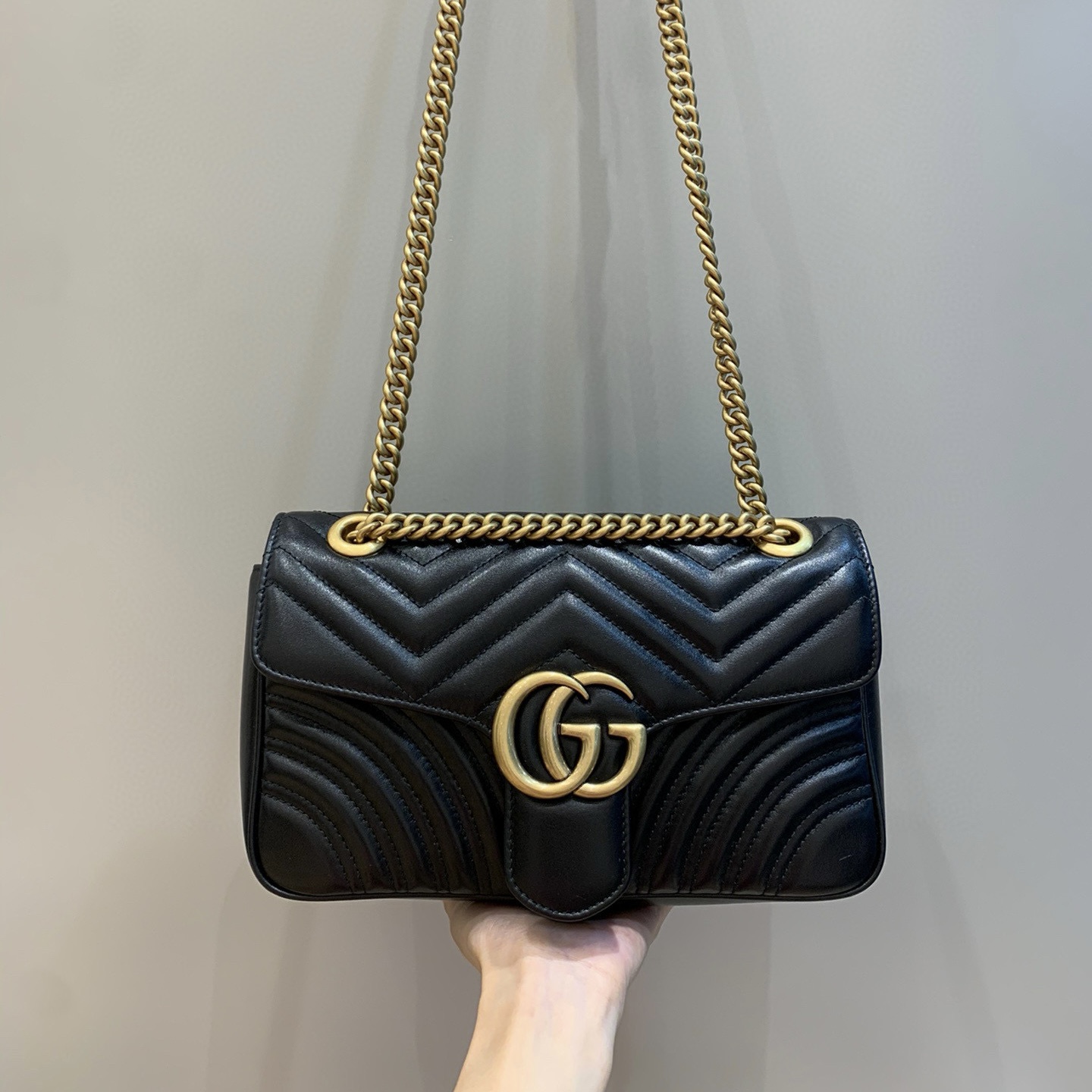 全新的marmont全皮迷你托特包在長方形包身上裝飾縱向橫向斜向交錯的銜縫處理,加上金屬鏈條銜接的雙提手,小面積的五金配件為包包增添了靈動的細節,這個設計造型完全俘獲了我的芳心!!