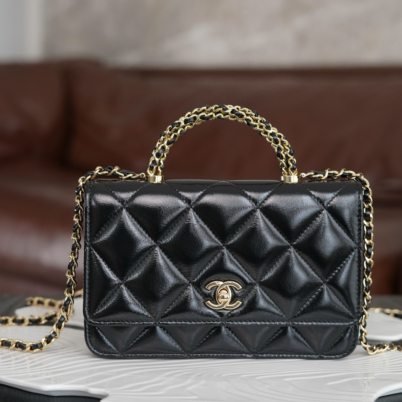 香奈兒包包如何分辨真假 22 小號手袋 亮面小牛皮與金色金屬
