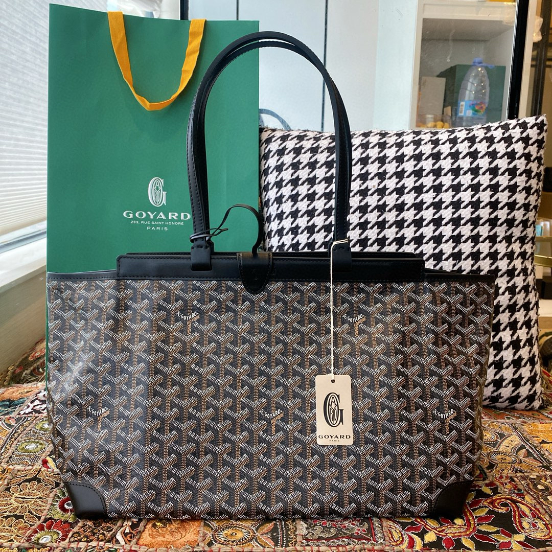 Goyard戈雅托特包系列 Taiwan專賣店 黑色拼棕色 BELLECHASSE BIAUDE 小號包