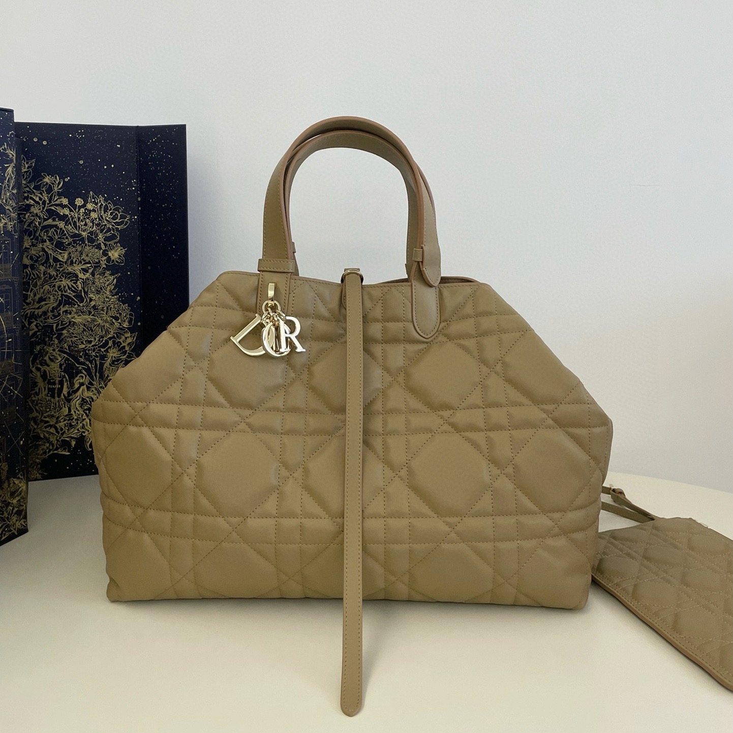 DIOR迪奧女包經典款式 中號 Dior Toujours 手袋 黑色牛皮革超大藤格紋