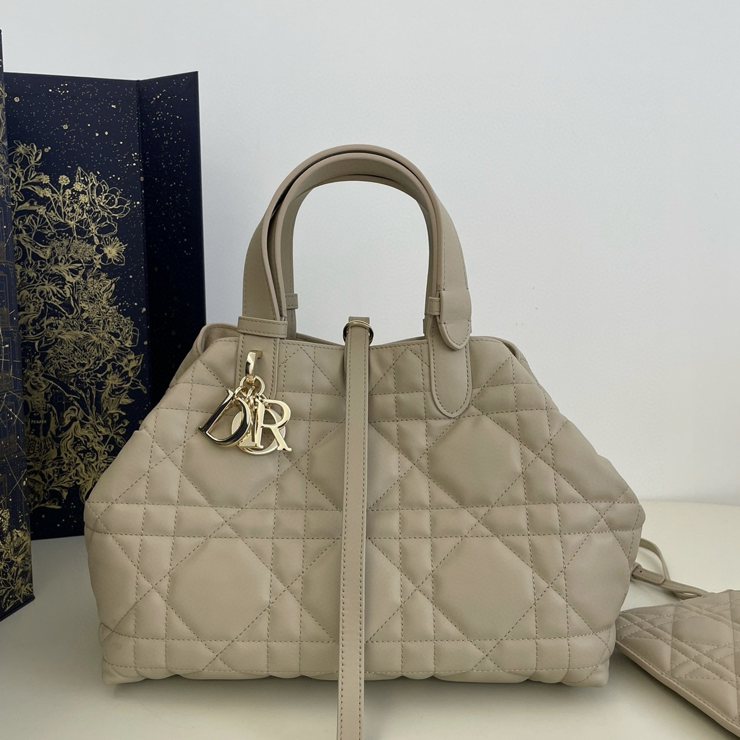 DIOR迪奧女包泰國專櫃 中號 Dior Toujours 手袋 古銅色牛皮革超大藤格紋