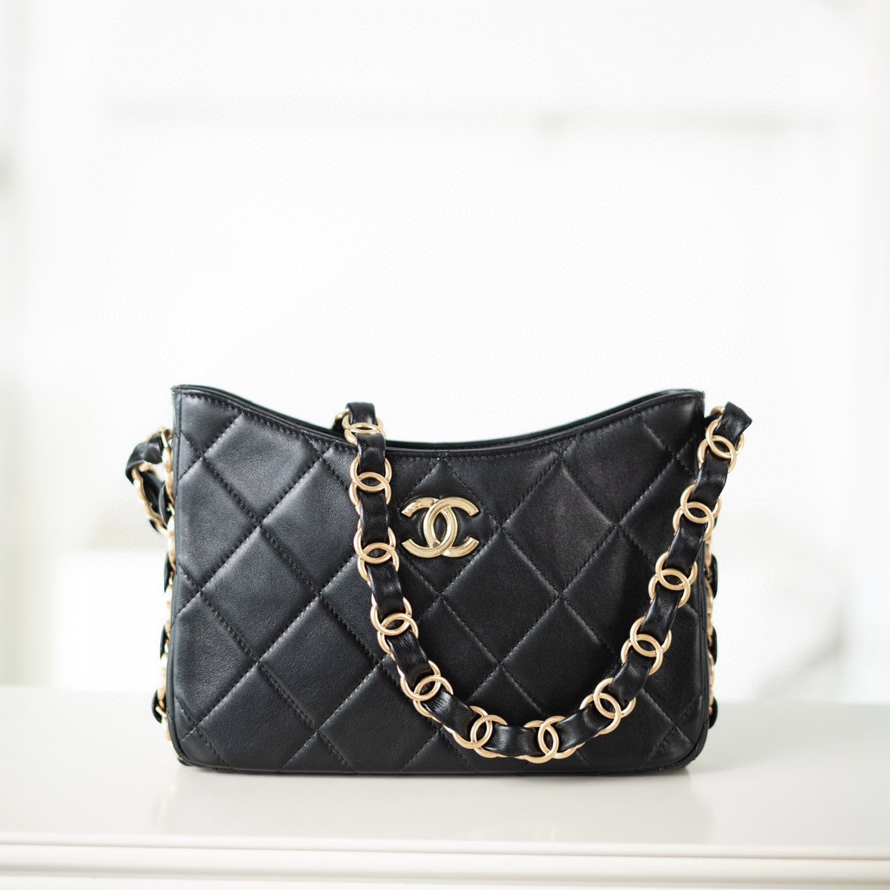 CHANEL包包USA官網價格圖片大全 新款24K迷你黑色粗鏈條腋下包