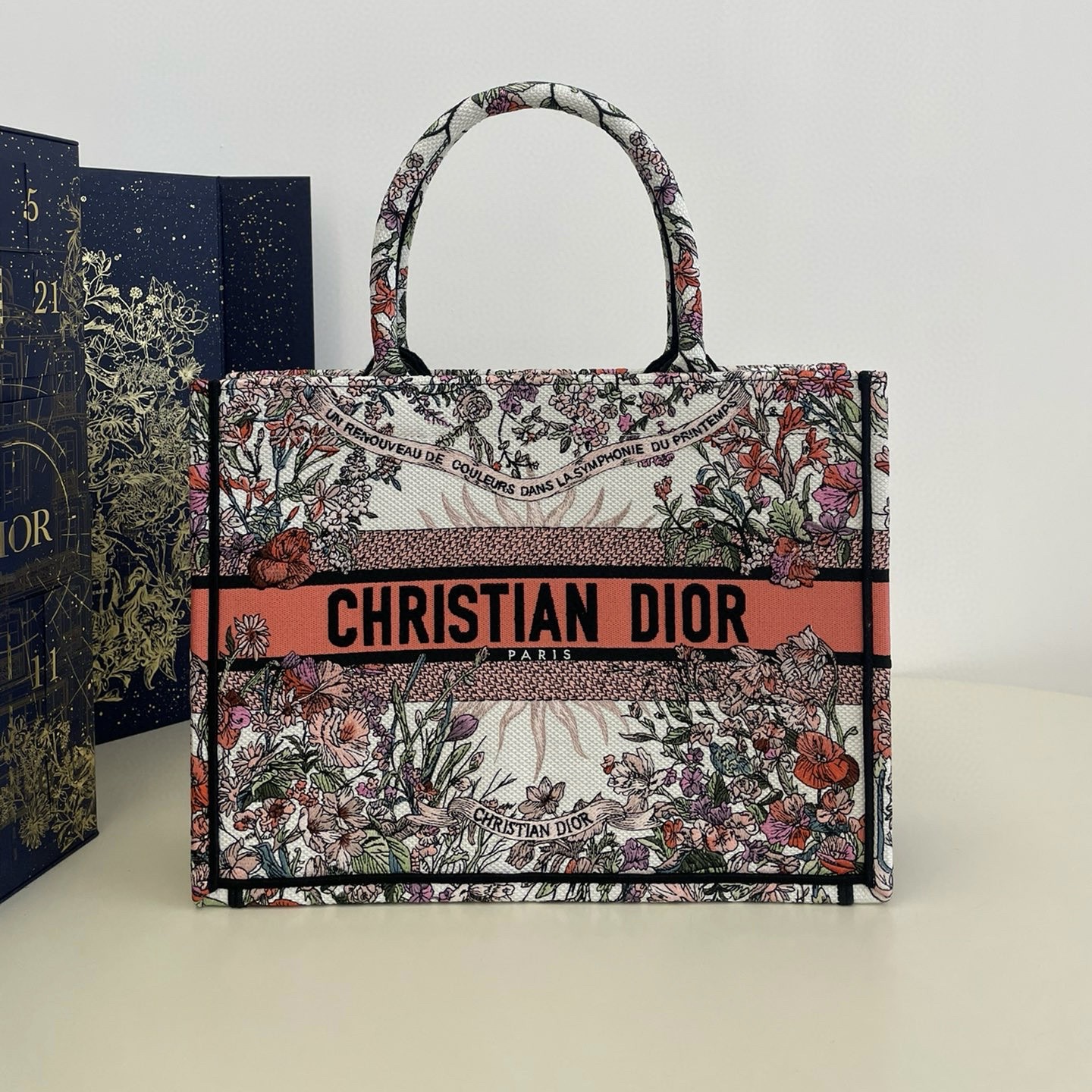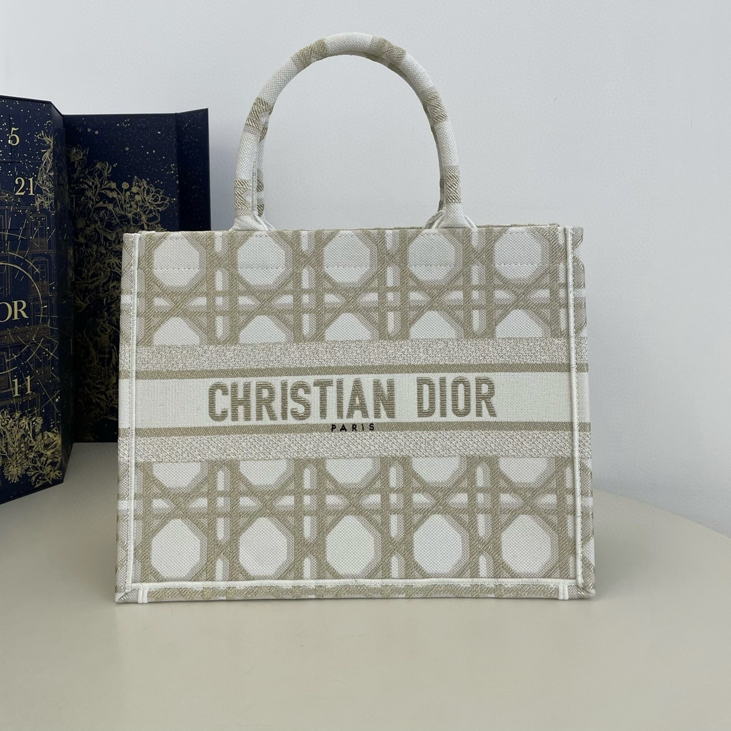 DIOR女士手袋籃式手袋 托特包菜籃子白色面料金色調超大藤格紋刺繡