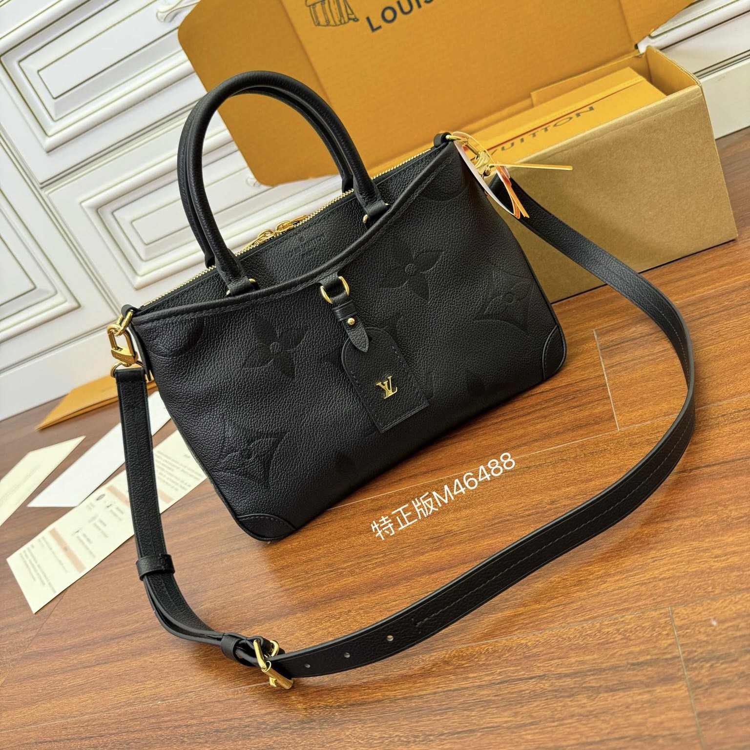 Trianon 中號手袋倡導優雅設計與功能主義。Monogram Empreinte 皮革壓印 Giant Monogram 圖案,適中尺寸可容納日常所需。軋製皮革手柄實現舒適手提,可調節皮革肩帶方便肩背和斜挎。