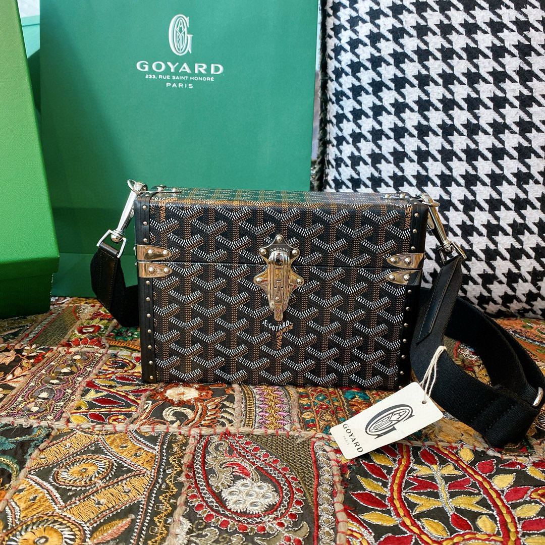 Cassette硬箱 完美的詮釋了 Maison Goyard 創新和永恒的特征,並在此展現了 Goyard 引以為傲的經典工藝: 行李箱製作和皮革製品手工製作。得益於它的搭扣和小巧的尺寸,它是放置日常必需品的安全理想之選,並且它還結合了優雅、精致和輕便的優點。它的肩帶使其擁有多種不同的佩戴方式。