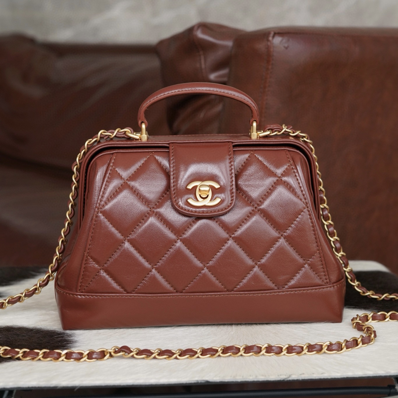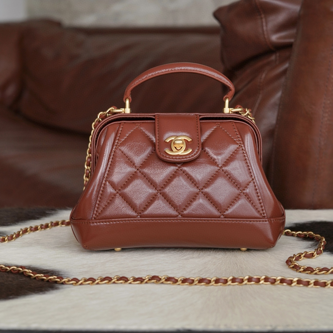 CHANEL包包官網最新款式經典棕色小牛皮 22手袋 斜挎包