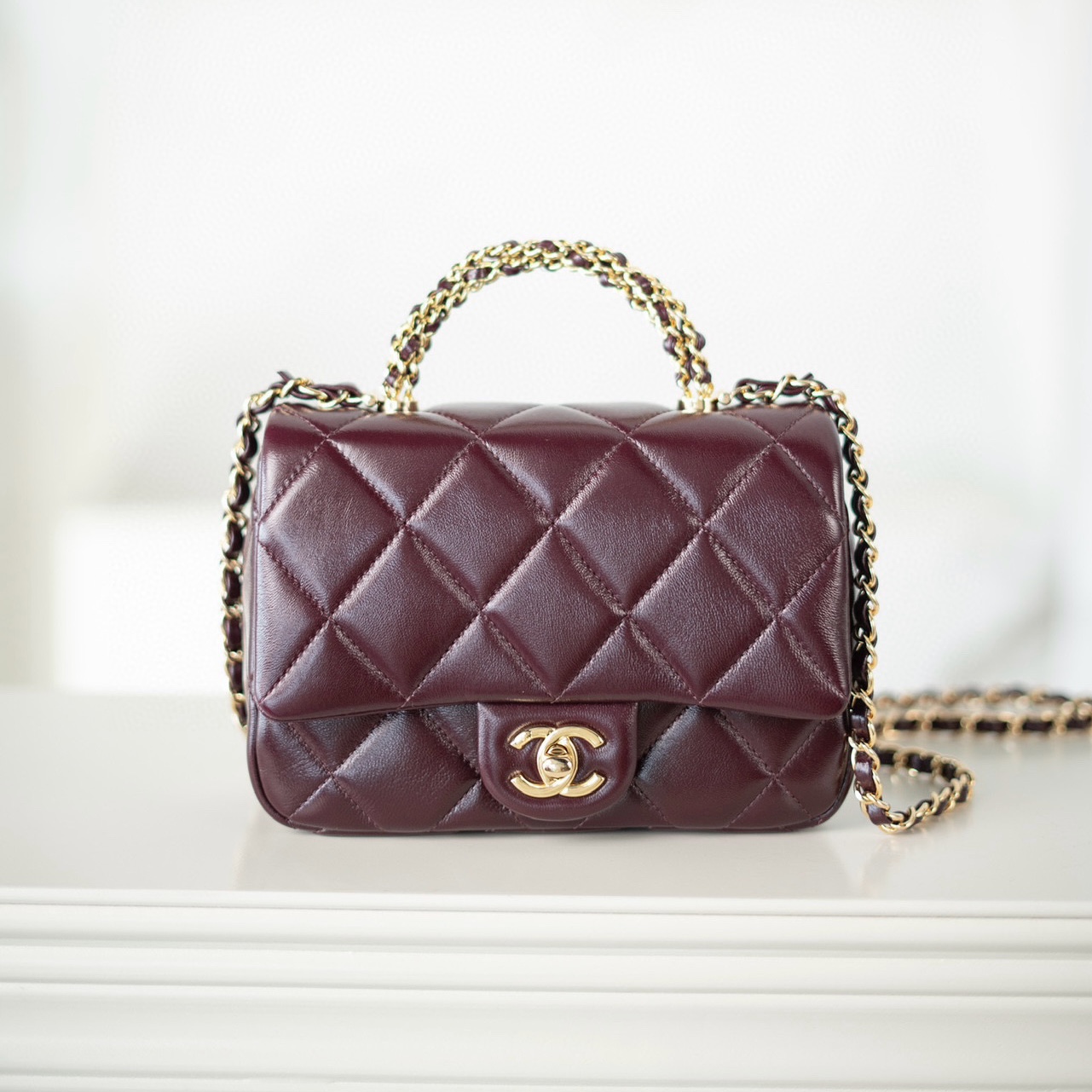 𝐂𝐇𝐀𝐍𝐄𝐋 𝟐𝟒𝐛 Flap新型粗鏈手柄酒紅 大號