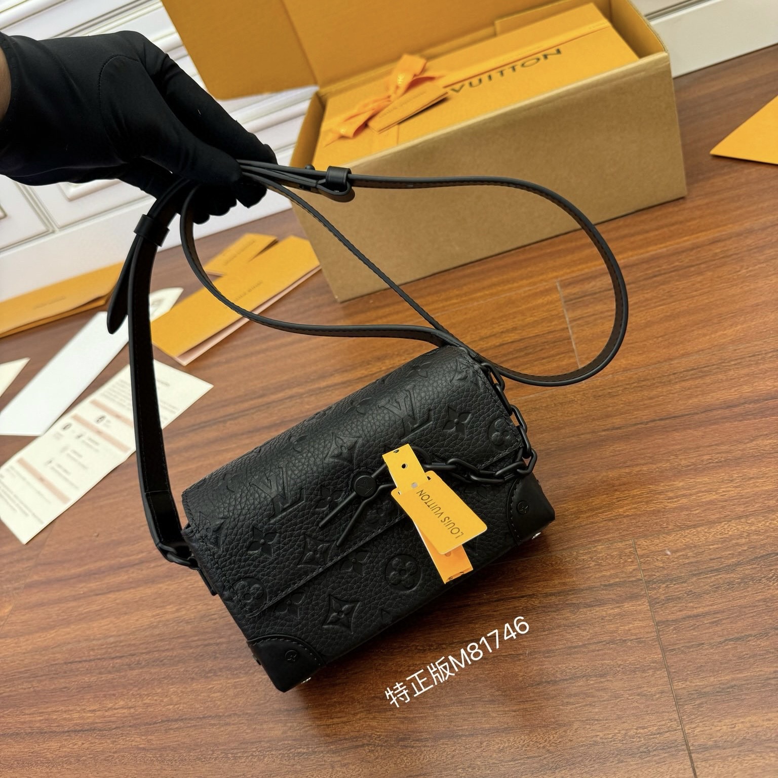本款 Mini Pochette Accessoires 手拿包為 Monogram Empreinte 皮革壓印 Monogram Medium 圖案,搭配鏈條和耀目金屬件。單獨使用或固定於大號手袋皆宜。