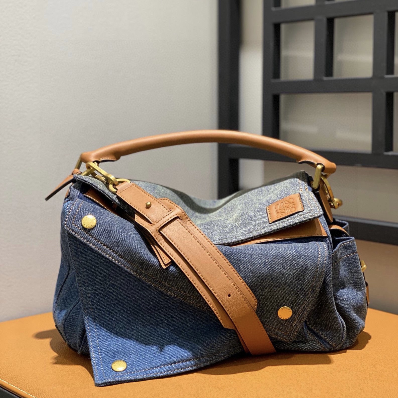 可肩背、斜挎、斜背或皮帶懸掛可拆卸可調節牛皮革 LOEWE 提花肩帶