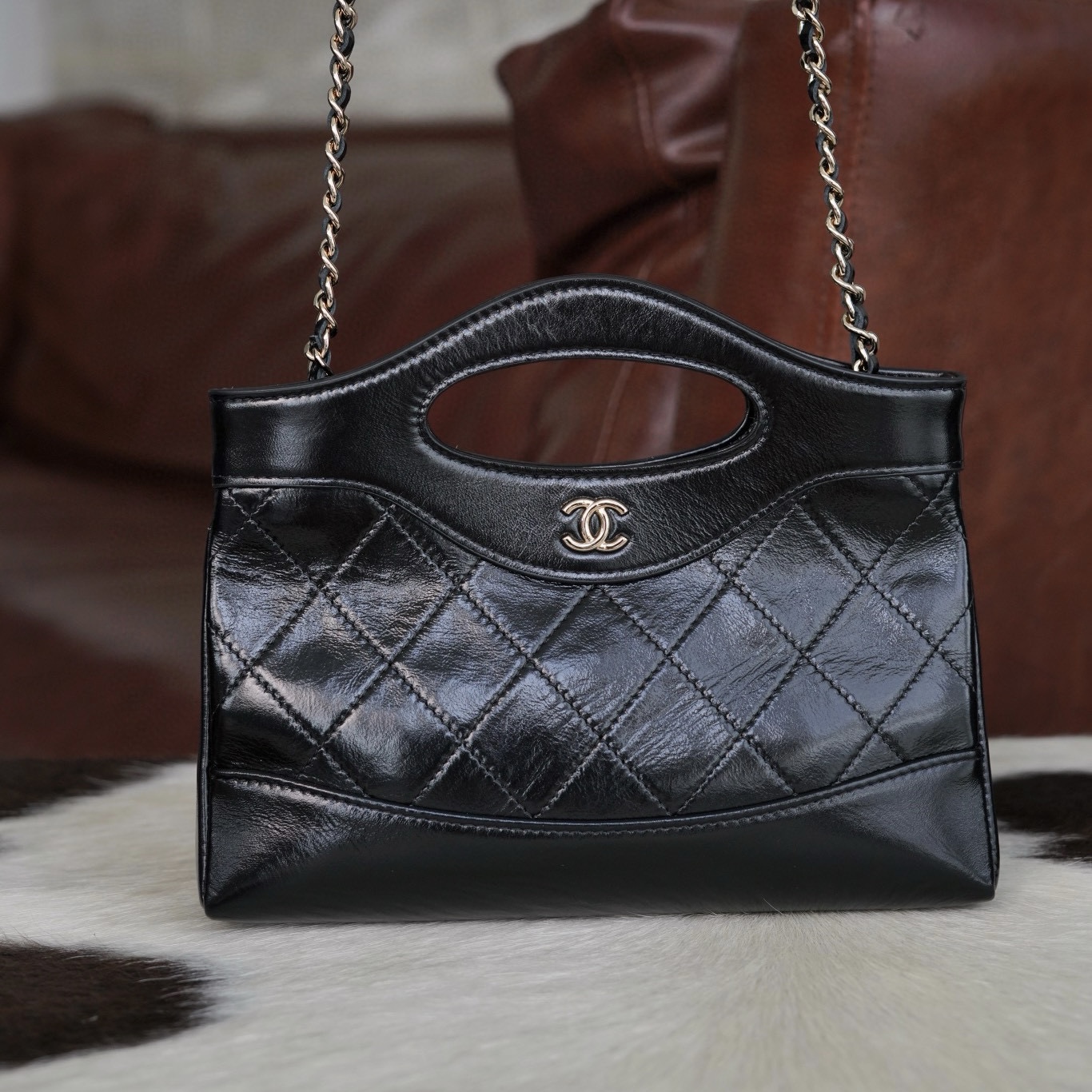 香奈兒包包如何分辨真假 22 小號手袋 亮面小牛皮與金色金屬