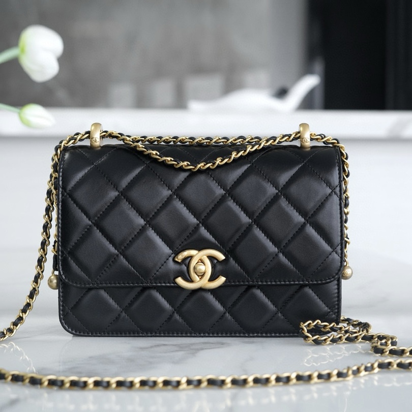 CHANEL包包Hong Kong官網 黑色小牛皮雙金球cf迷你19斜挎包