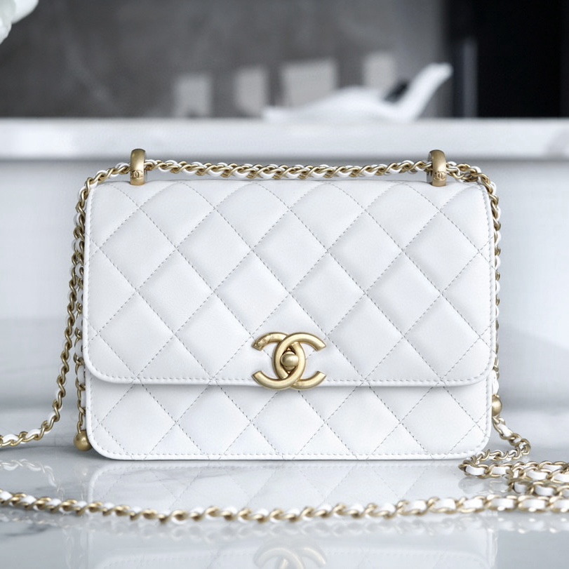 CHANEL包包香港官網價格圖片一覽表 22 小號手袋 白色亮面小牛皮
