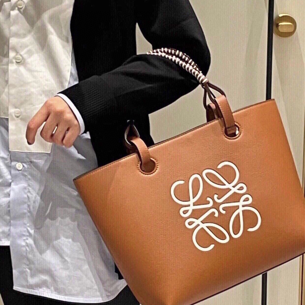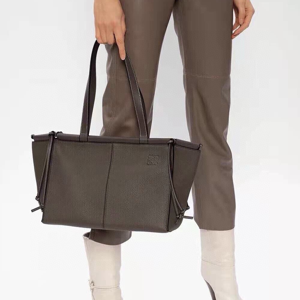 LOEWE包包經典款式專賣店 黑色紙紋牛皮革 Fold Shopper購物袋