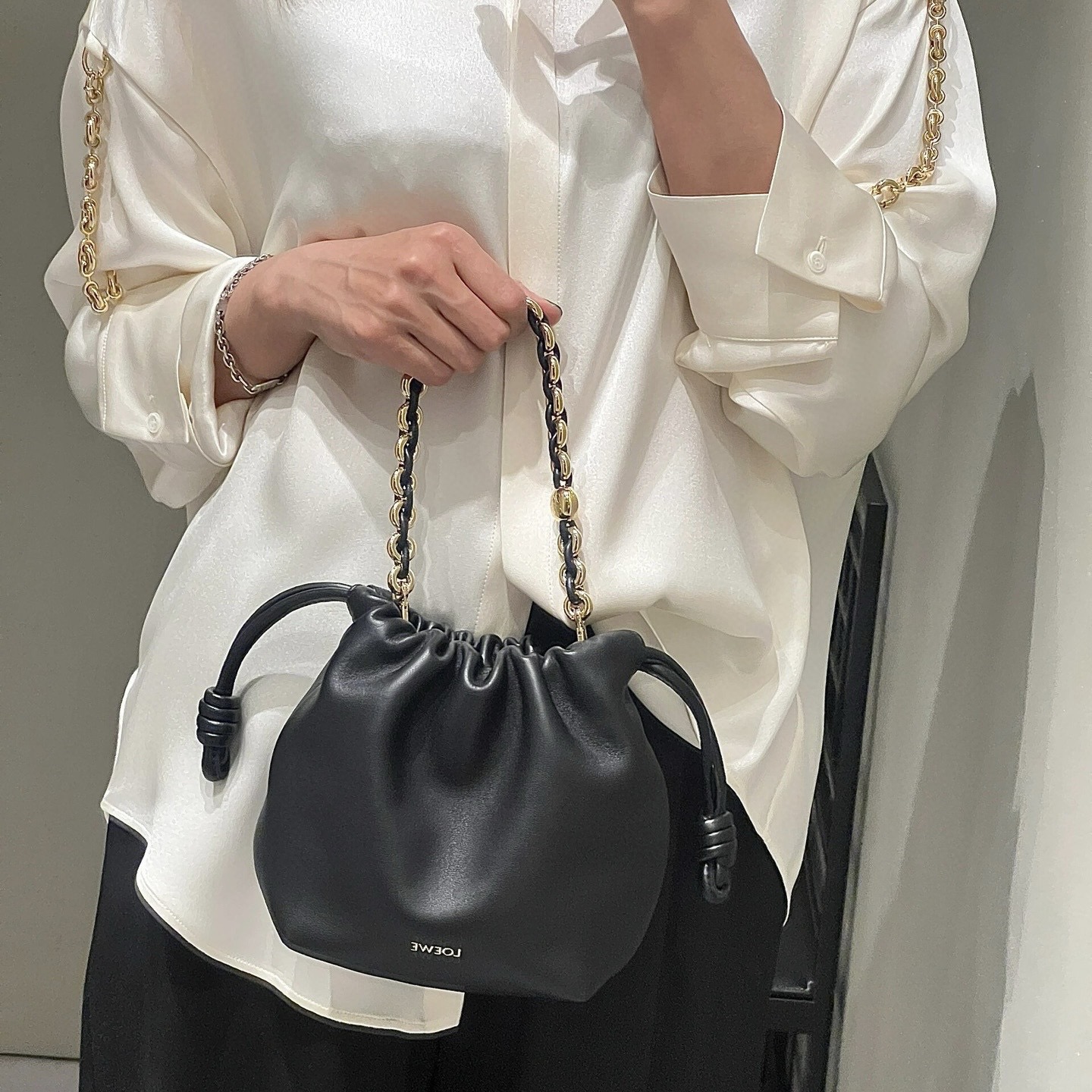 Cubi 斜挎包是一款寬敞且柔軟的手袋,可輕松適應體形。此小號版本采用柔軟光滑牛皮革製成,配有 LOEWE 提花肩帶。