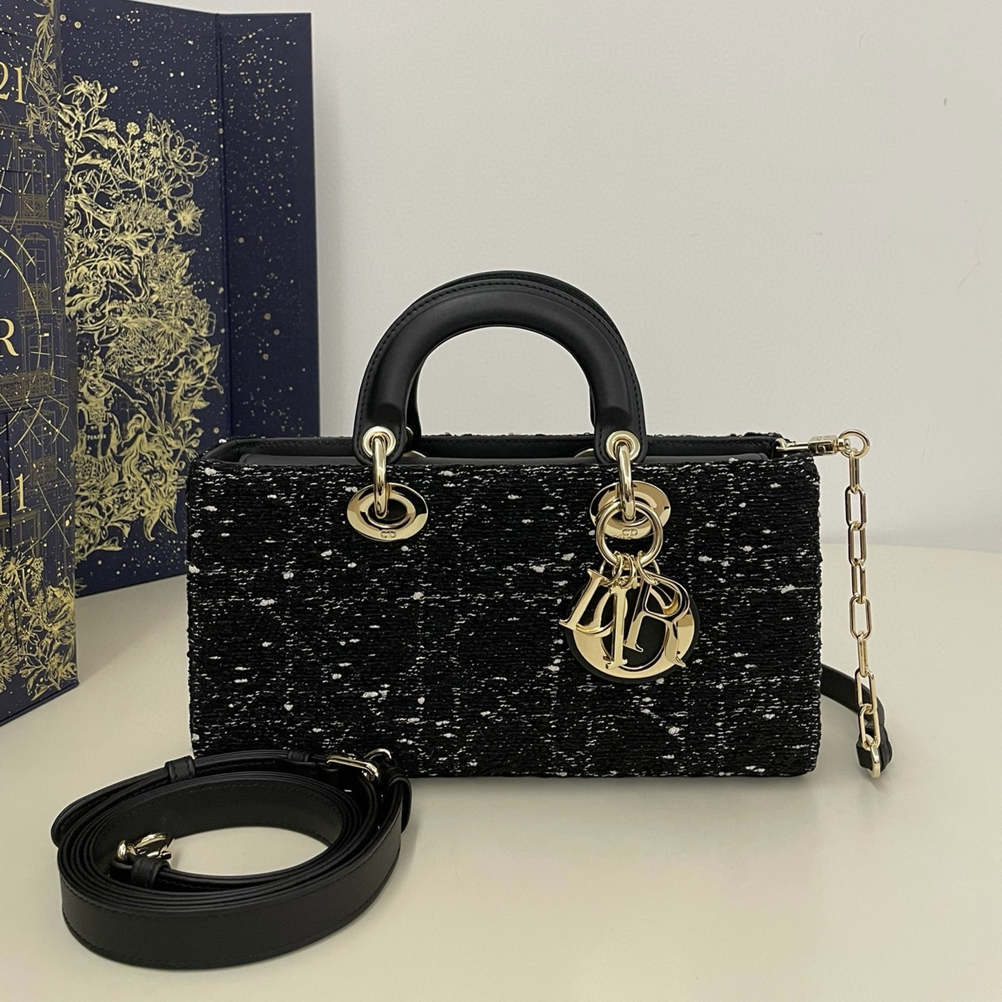迪奧最經典的包包網站 Miss Caro 迷你鏈條粗花呢系列斜挎包