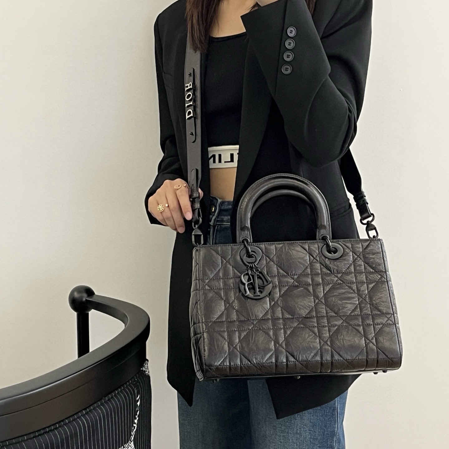 迪奧Dior 官方網站價格圖片 Toujours 手袋 小號黑色牛皮革超大藤格紋