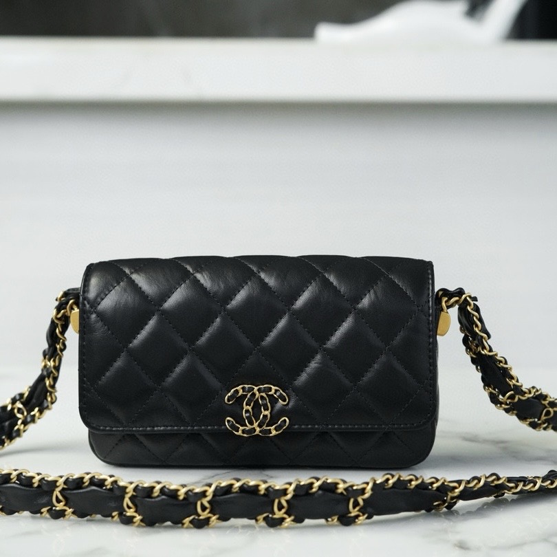 CHANEL香奈兒2024新款Canada官網 22 迷你手袋 黑色亮面小牛皮