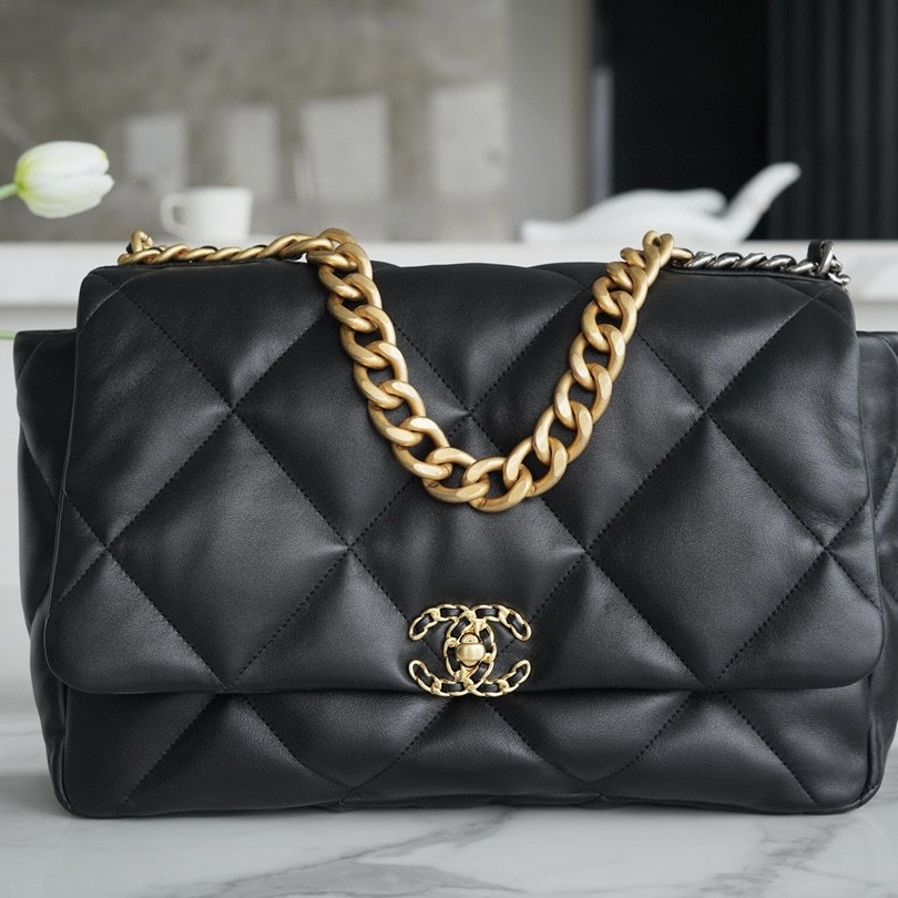 香奈兒女士手袋經典系列 19bag手袋 小號 黑金配飾 小羊皮材質