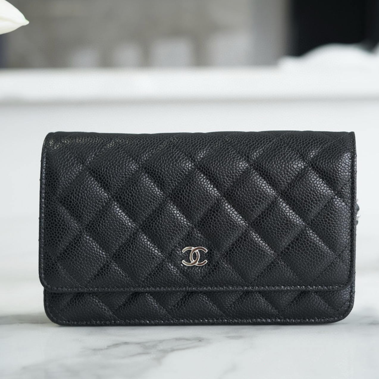 CHANEL女士手袋新款官方網站 woc鏈條 魚子醬顆粒壓花小牛皮 黑牛金
