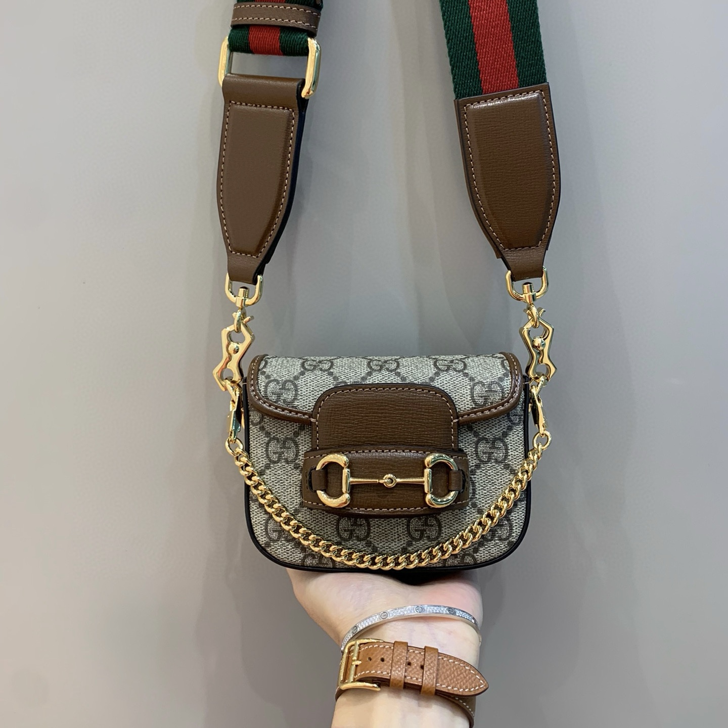 可調節提手(17厘米高)金屬鏈肩帶(60厘米高)