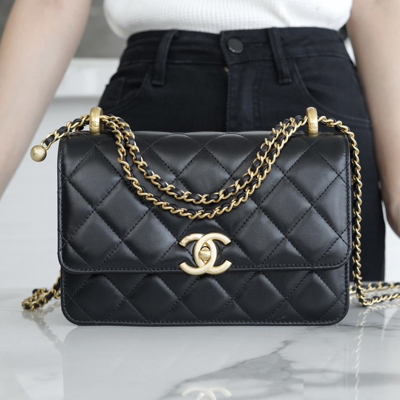 New York USA CHANEL包包專櫃價格多少錢 22 迷你手袋 亮面小牛皮 黑色