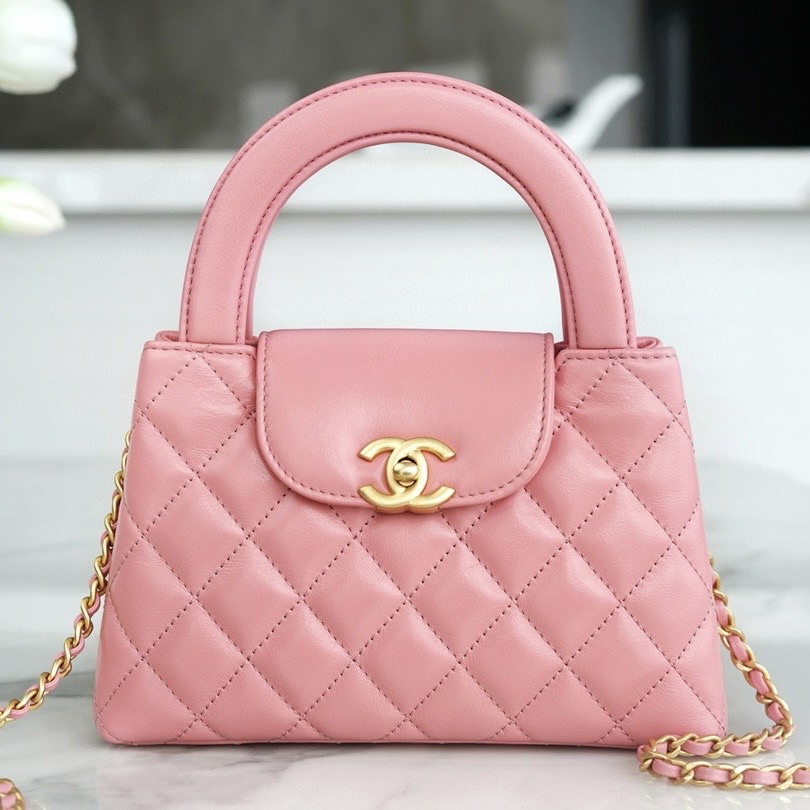 CHANELTaiwan專櫃最新款網站 22 迷你手袋 亮面小牛皮與金色金屬 淡粉紅
