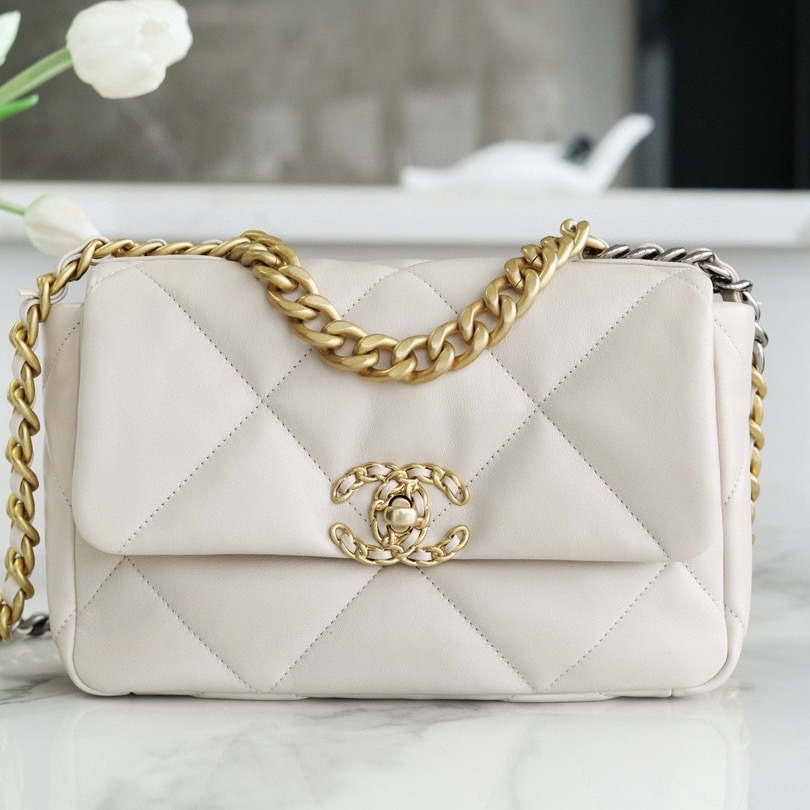 以誕生年份❷⓿❶❾命名的𝓬𝘩𝘢𝘯𝘦𝘭 𝟏𝟗手袋。綿延百年的歷史最終在𝟏𝟗身上收攏線索。✍🏻每一節鏈環都有故事,每寸紋理都是打磨,一針一線皆有源可溯。🎖經典從不懼怕更新自我,張開雙臂擁抱現代生活方式,在經典的肩膀上向前更邁一步~