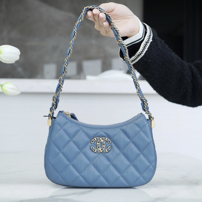 CHANEL香奈兒包包官方網站最新款式價格 22 小號手袋 藍色絎縫丹寧