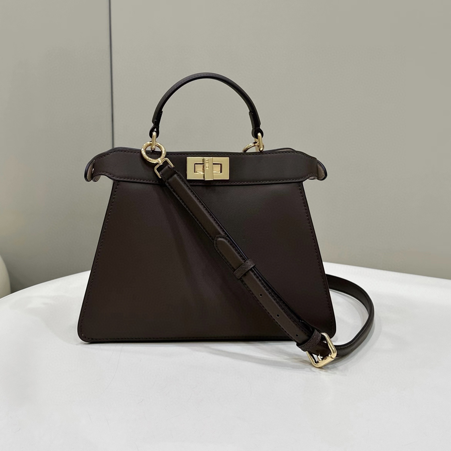英國FENDI芬迪包包 官網專賣店 棕色小號 Peekaboo Iseeu手袋