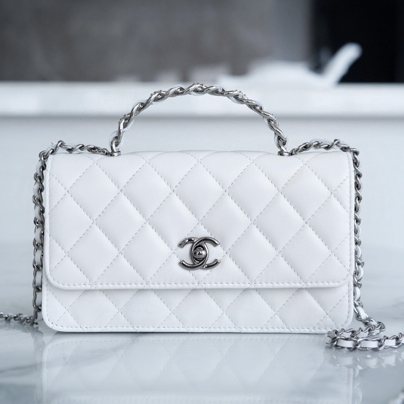 CHANEL包包香港官網價格圖片一覽表 22 小號手袋 白色亮面小牛皮