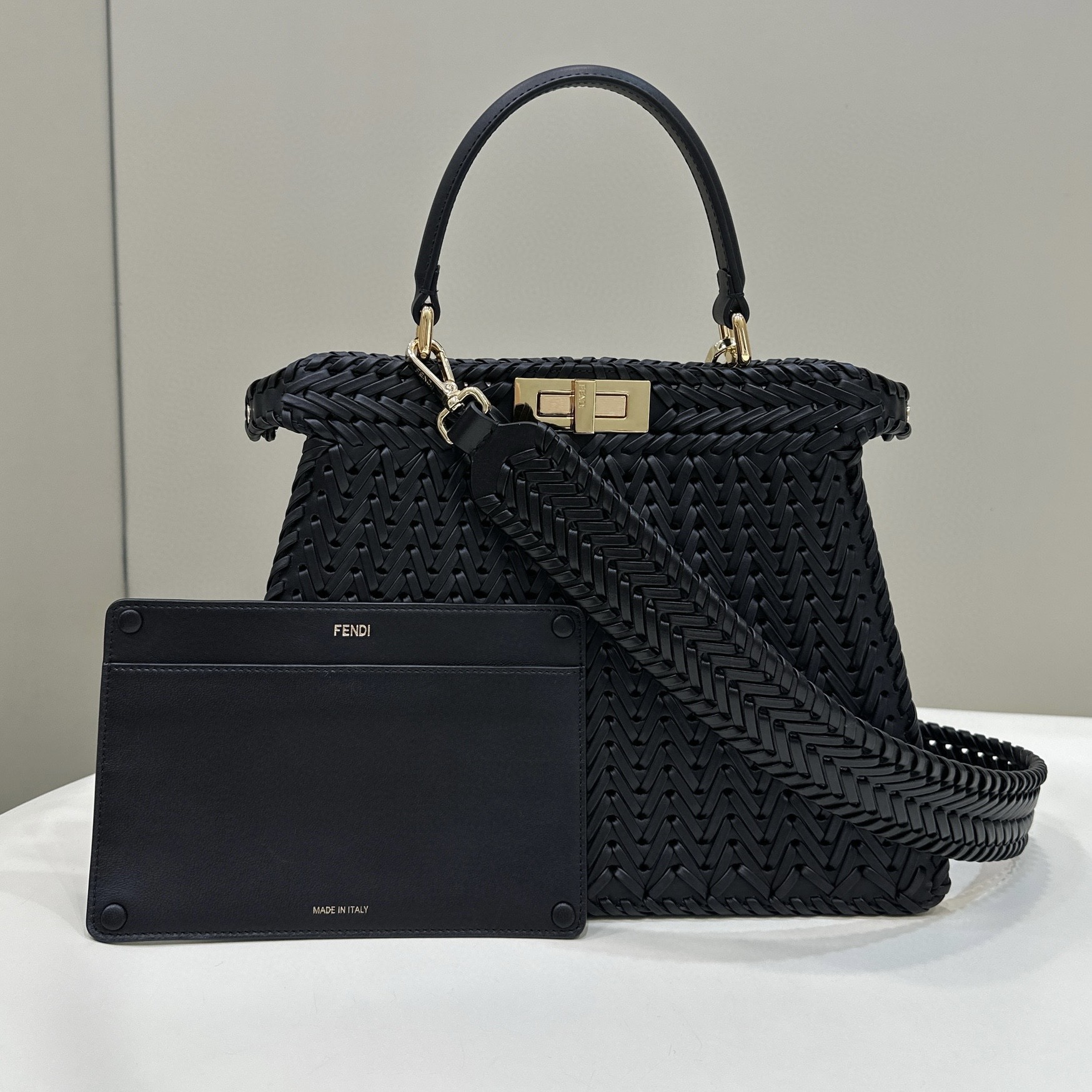 FENDI芬迪女士包經典Peekaboo ISeeU中號手袋 棕色皮革手提包
