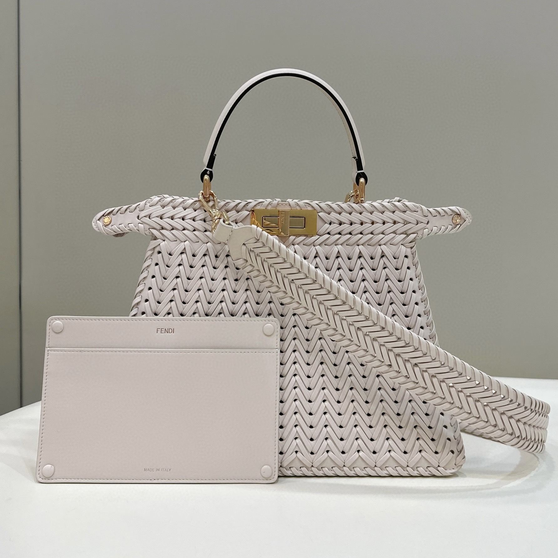 FENDI芬迪女包經典款式專賣店 Peekaboo ISeeU中號手袋黑色辮編皮革手袋