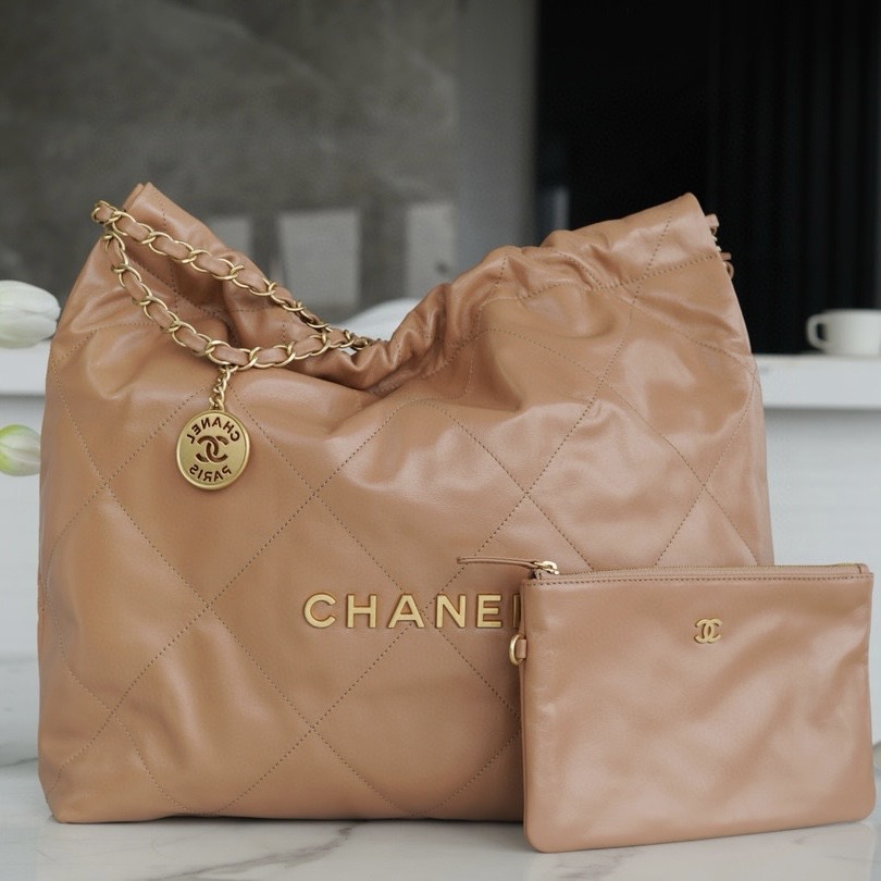 CHANEL包包官網最新款式經典棕色小牛皮 22手袋 斜挎包