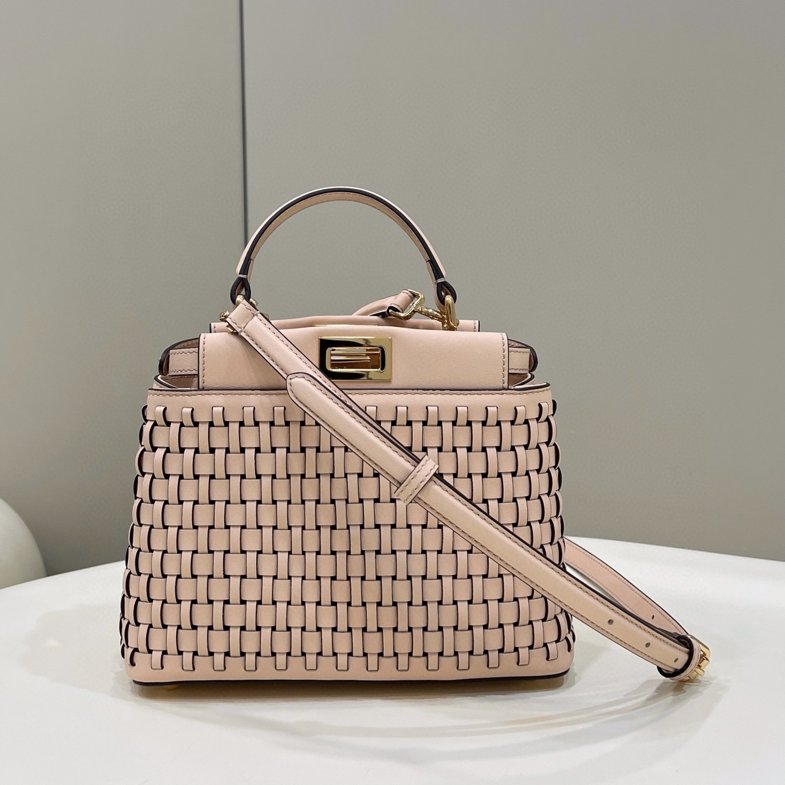 FENDI芬迪包包 新款Peekaboo ISeeU中號手袋 午夜藍編織皮質手提包