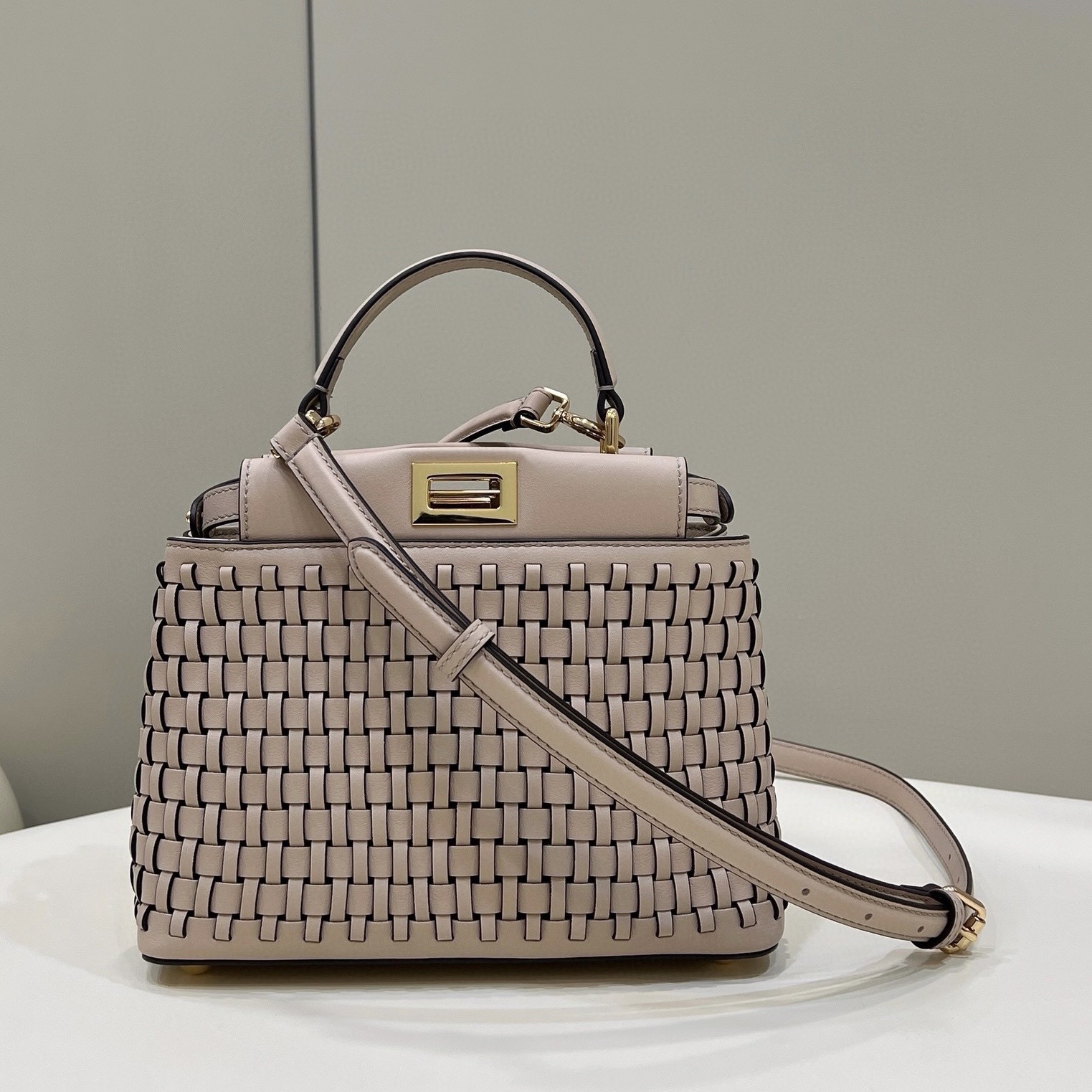 FENDI芬迪包包 標誌性Peekaboo小號手袋 白色和藍色編織皮革手袋