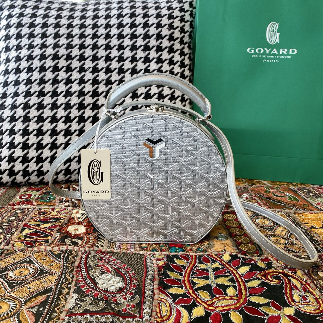 灰色~Goyard戈雅專櫃最新版升級版新色🎀 alto hatbox 老花圓餅硬盒包~18×16×8cm💕多色可選 配色經典 帆布面料帶著清香 做工精致 ☺️老花紋也特別耐看~除愛馬仕外最好的手工高奢品牌,低調奢華的完美詮釋。配專櫃全套包裝送禮首選✨