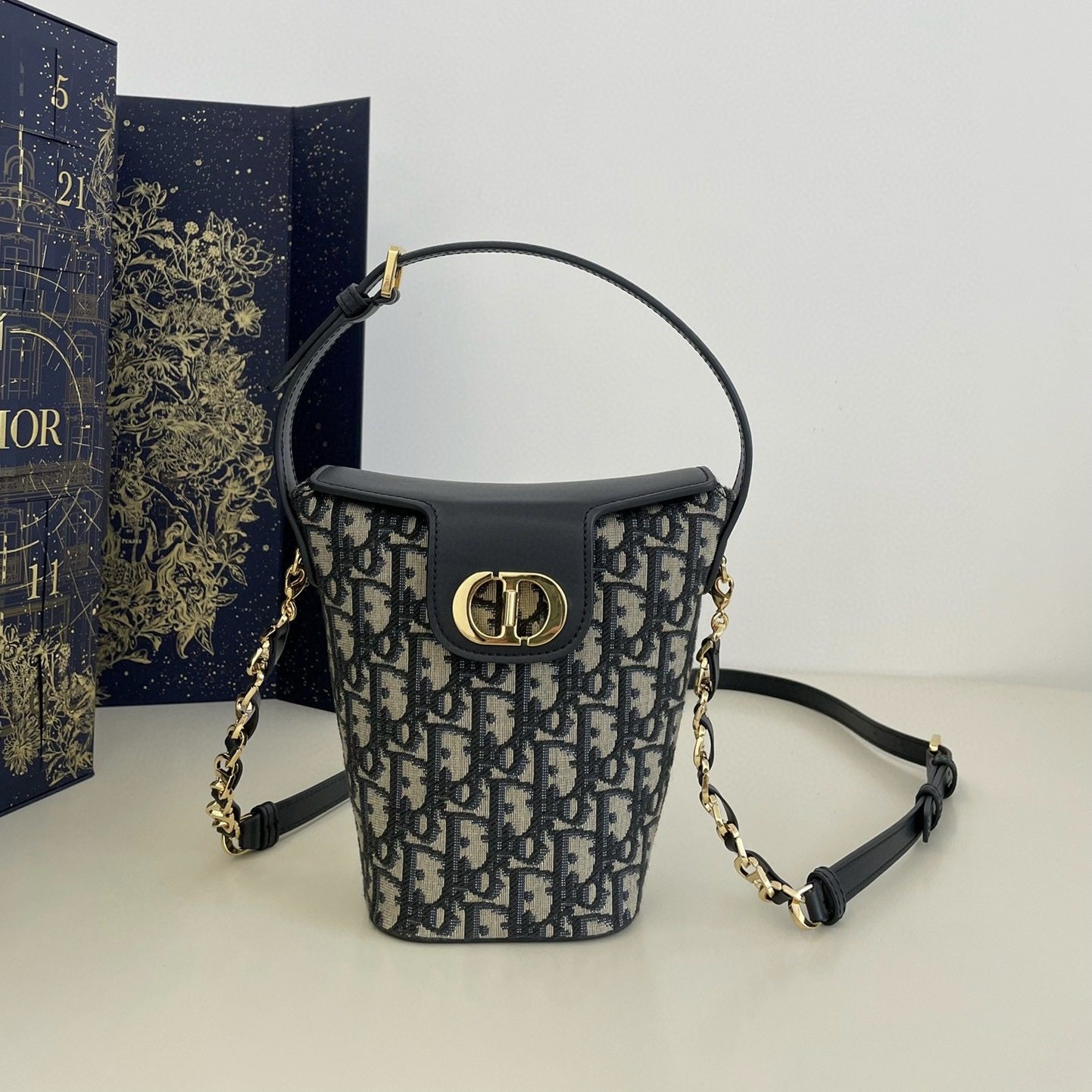24早春系列最新薯條包,敲可愛的新包型,與常見的抽繩水桶包不同,它整體是倒梯形的就像麥當勞薯條的盒子,趣味十足,黑色牛皮外觀增加了各種造型搭配的可能性,容量也非常可觀,比想象的要能裝,感覺可以從這個冬天一直背到明年夏季